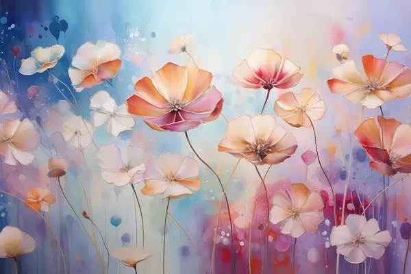 Murais de parede Flores silvestres brilhantes em estilo aquarela salpicada Nr. w09521