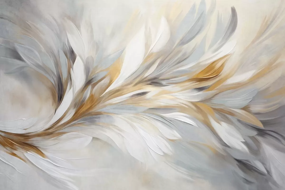 Murais de parede Estilo de pintura abstrata com pinceladas texturizadas em branco, amarelo e cinza, com um fundo suave e claro. Nr. w09552