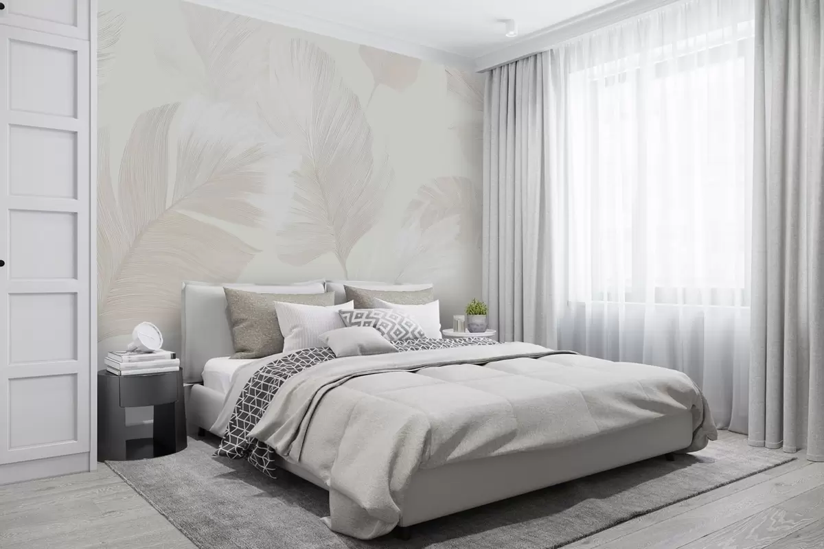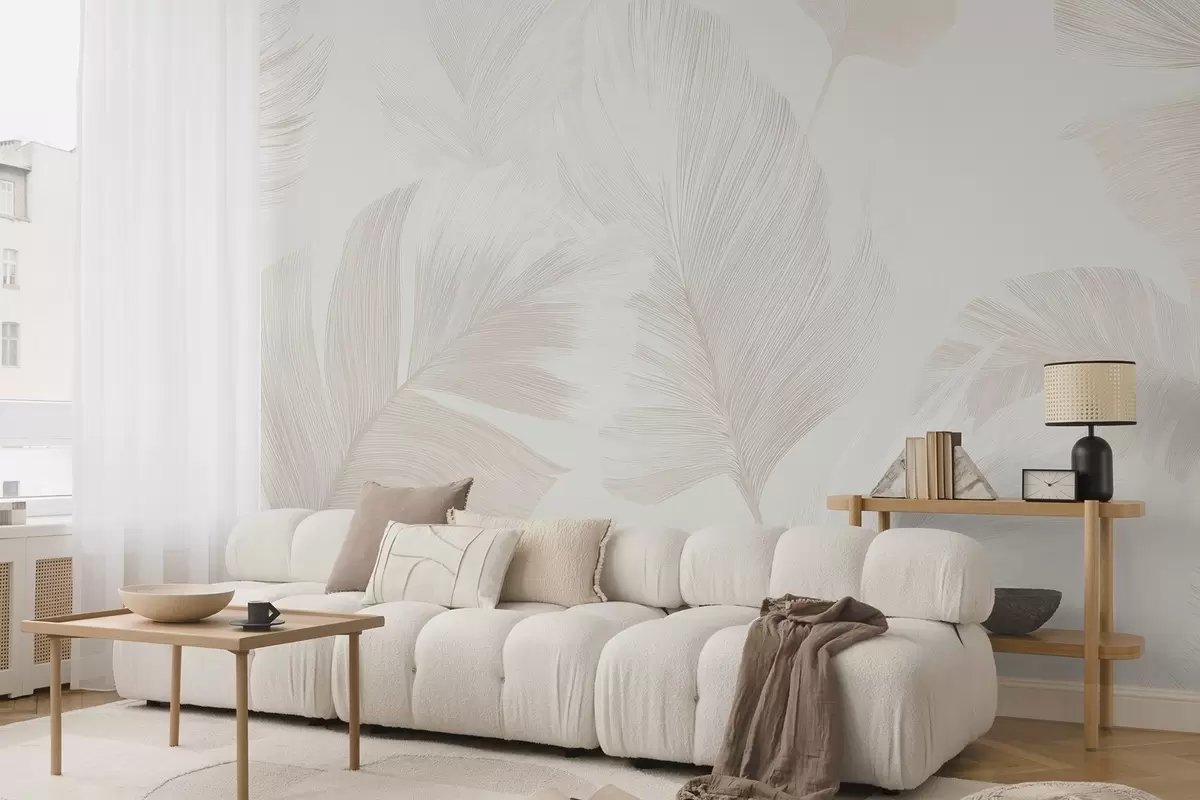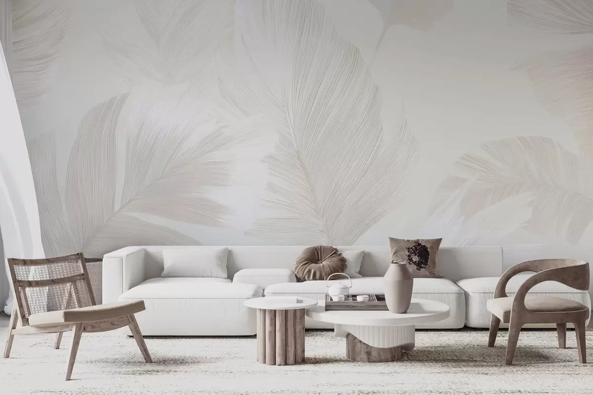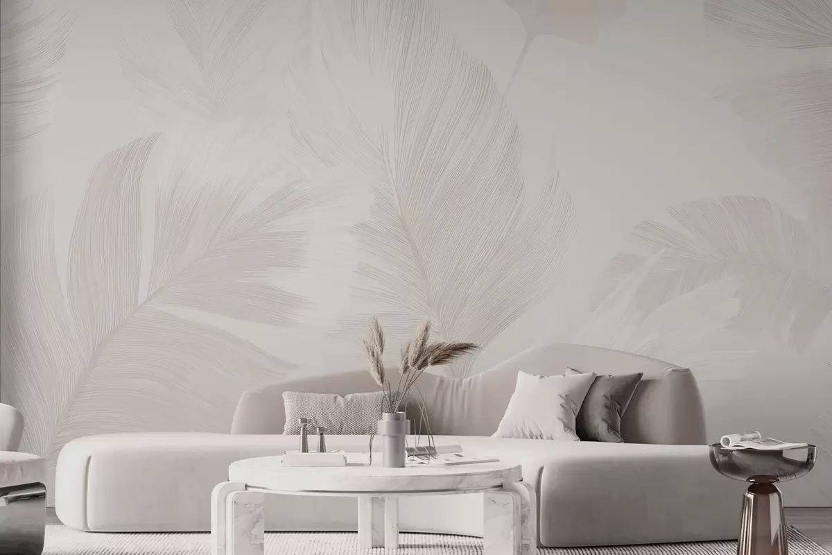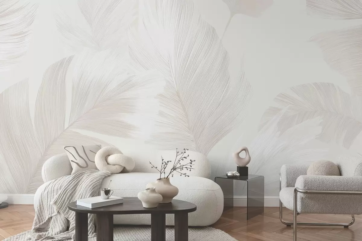 Murais de parede Penas suaves em tons de bege leitosos Nr. w09563
