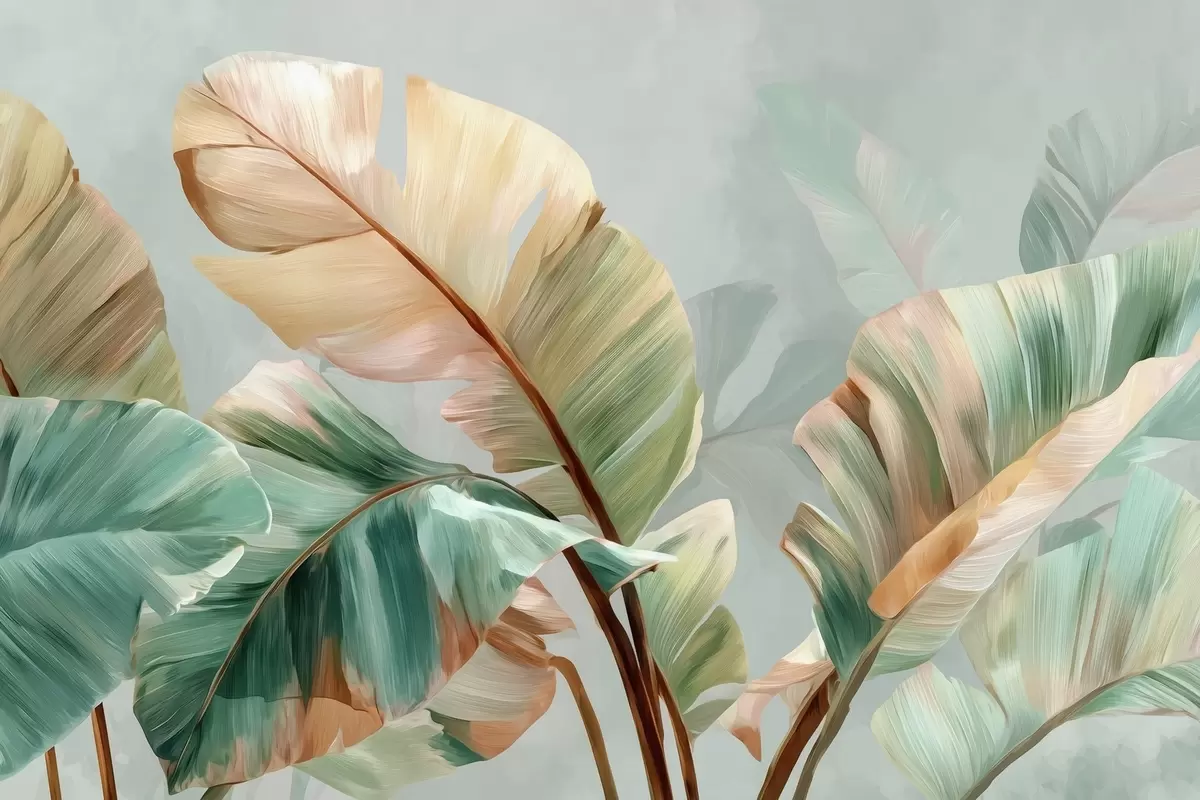 Murais de parede Delicadas folhas de bananeira tropical em tons pastel de amarelo-esverdeado Nr. w09581