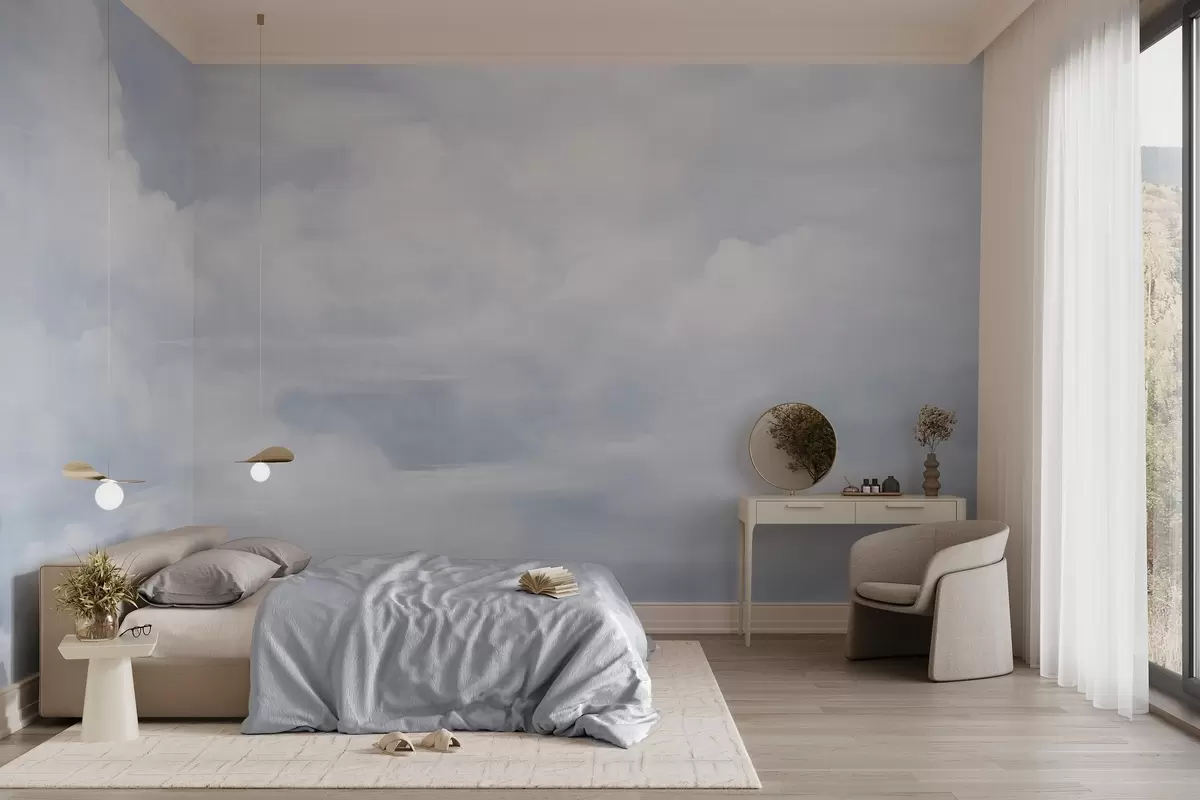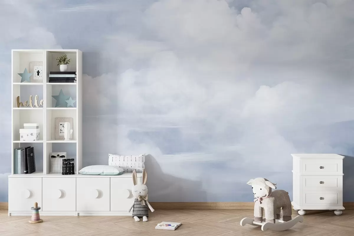 Murais de parede Céu com textura pastel repleto de nuvens brancas com estética suave e minimalista Nr. w09589