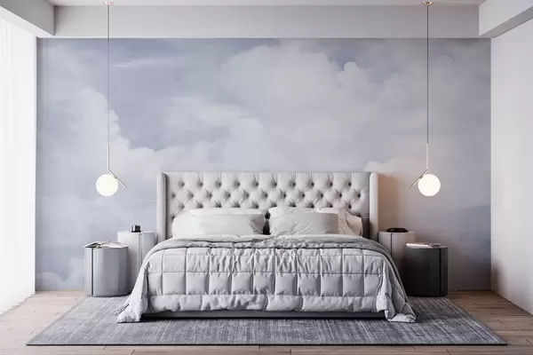 Murais de parede Céu com textura pastel repleto de nuvens brancas com estética suave e minimalista Nr. w09589