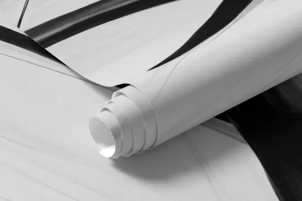 Impresso sob encomenda e entregue em rolos de até 50 cm de largura.
