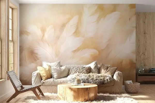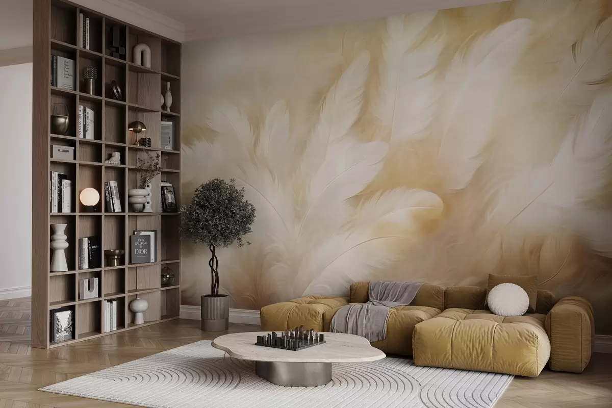 Murais de parede Penas brancas e amarelas com textura suave Nr. w09606
