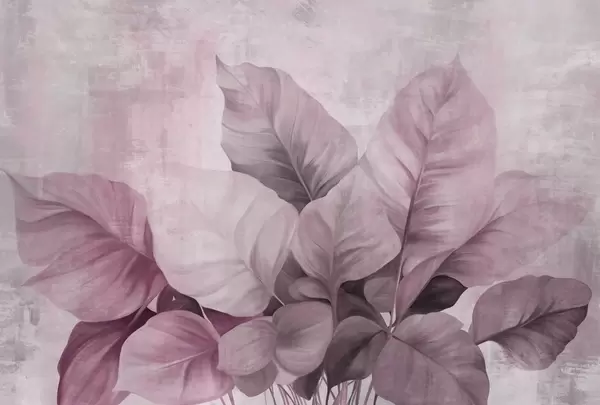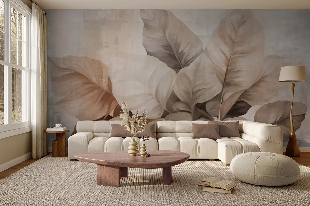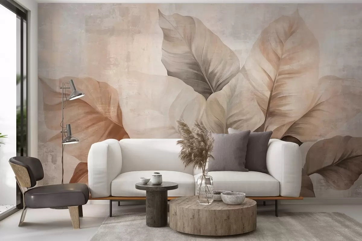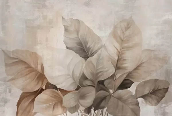 Murais de parede Pintura texturizada imitando folhas grandes e castanhas claras contra um fundo neutro com pinceladas subtis. Nr. w09614
