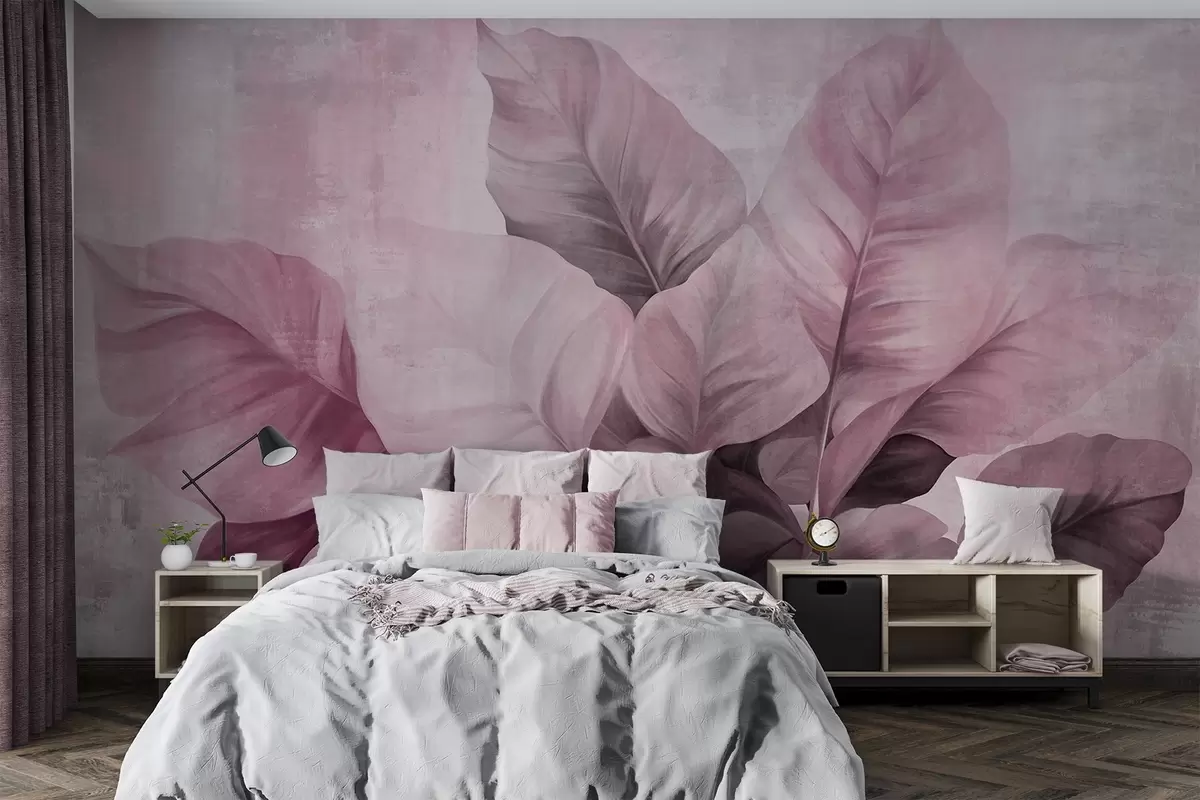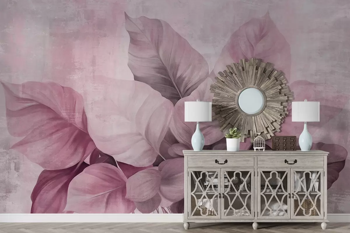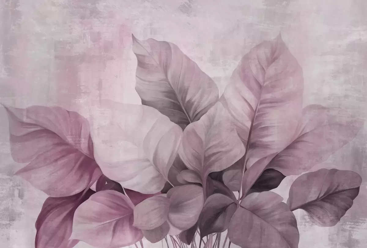 Murais de parede Pintura texturizada imitando folhas grandes e rosa claro contra um fundo neutro com pinceladas subtis Nr. w09614v1