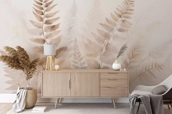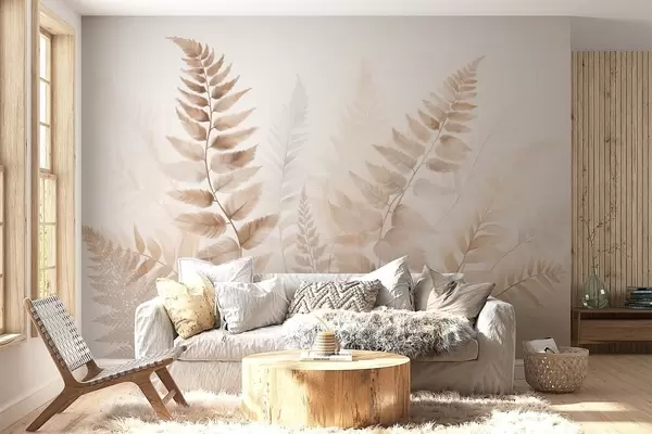 Murais de parede Folhas secas de samambaia texturizadas em vários tons de castanho, com um fundo suave e claro em estilo aquarela. Nr. w09615