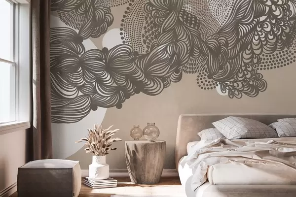 Murais de parede Desenho abstrato texturizado sobre fundo bege, com traços intricados e texturas pontilhadas. Nr. w09621