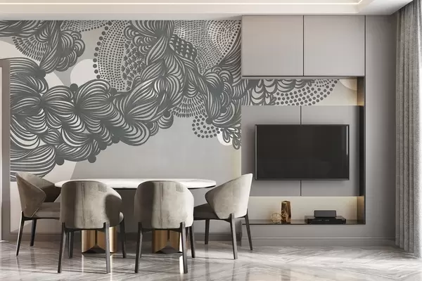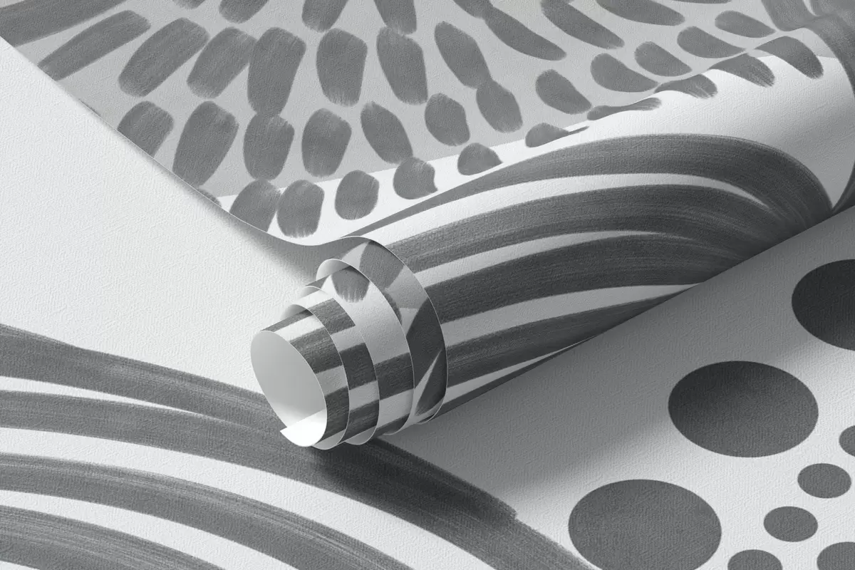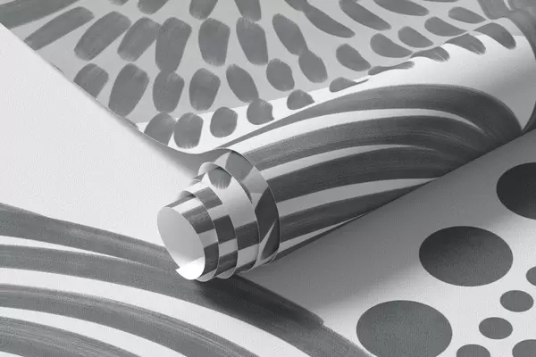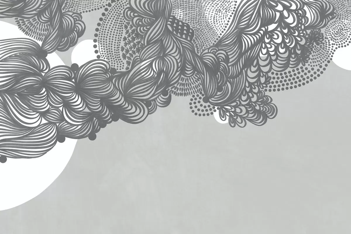 Murais de parede Desenho abstrato texturizado sobre fundo cinzento, com linhas intrincadas e texturas pontilhadas. Nr. w09621v1