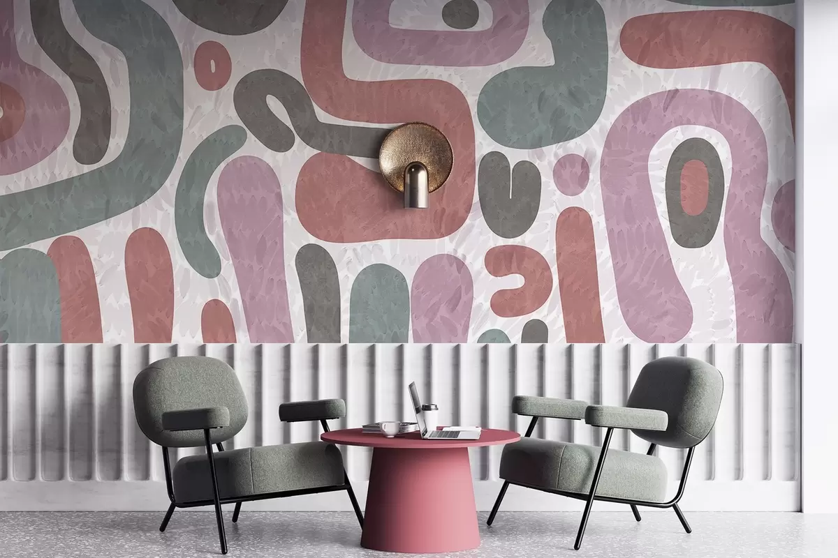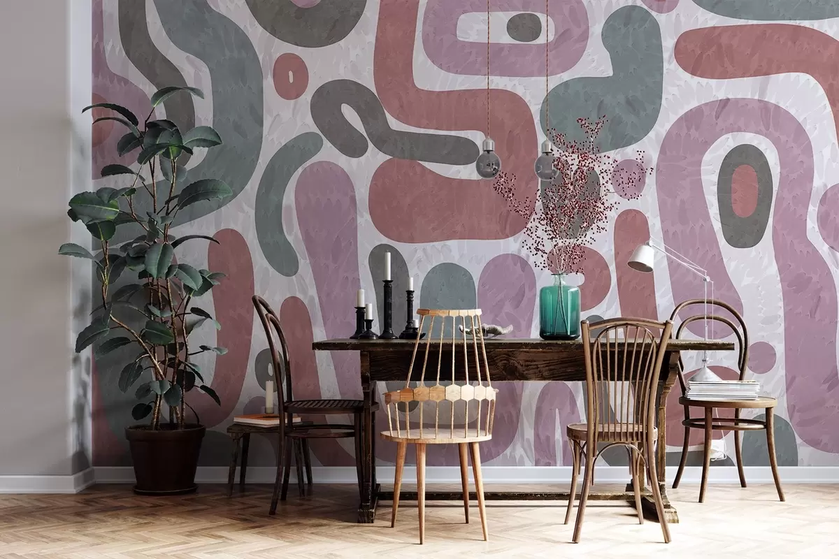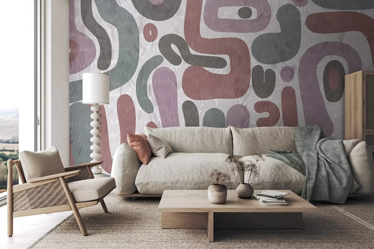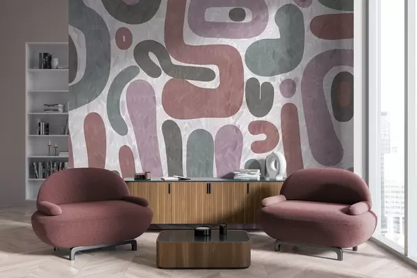 Murais de parede Formas abstratas texturizadas em tons suaves de rosa, verde e cinza, sobre um fundo texturizado arte moderna Nr. w09622