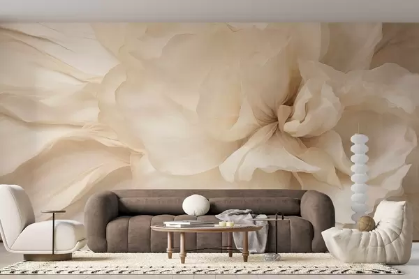 Murais de parede Flor delicada e texturizada, de cor clara, com pétalas translúcidas e fundo abstrato suave Nr. w09632
