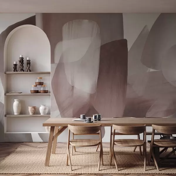 Murais de parede Formas abstratas texturizadas em tons suaves de bordô e cinza, com bordas suaves e camadas sobrepostas Nr. w09642v2