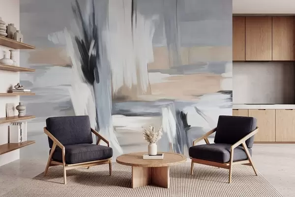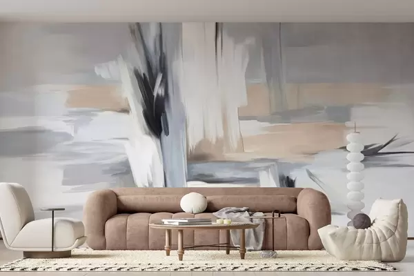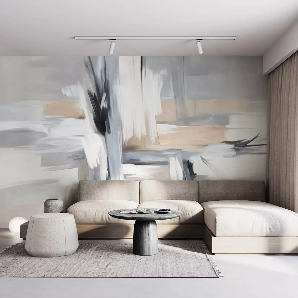 Murais de parede Pintura abstrata com textura e pinceladas em tons de branco, cinza e bege Nr. w09651