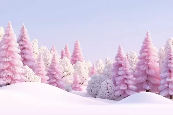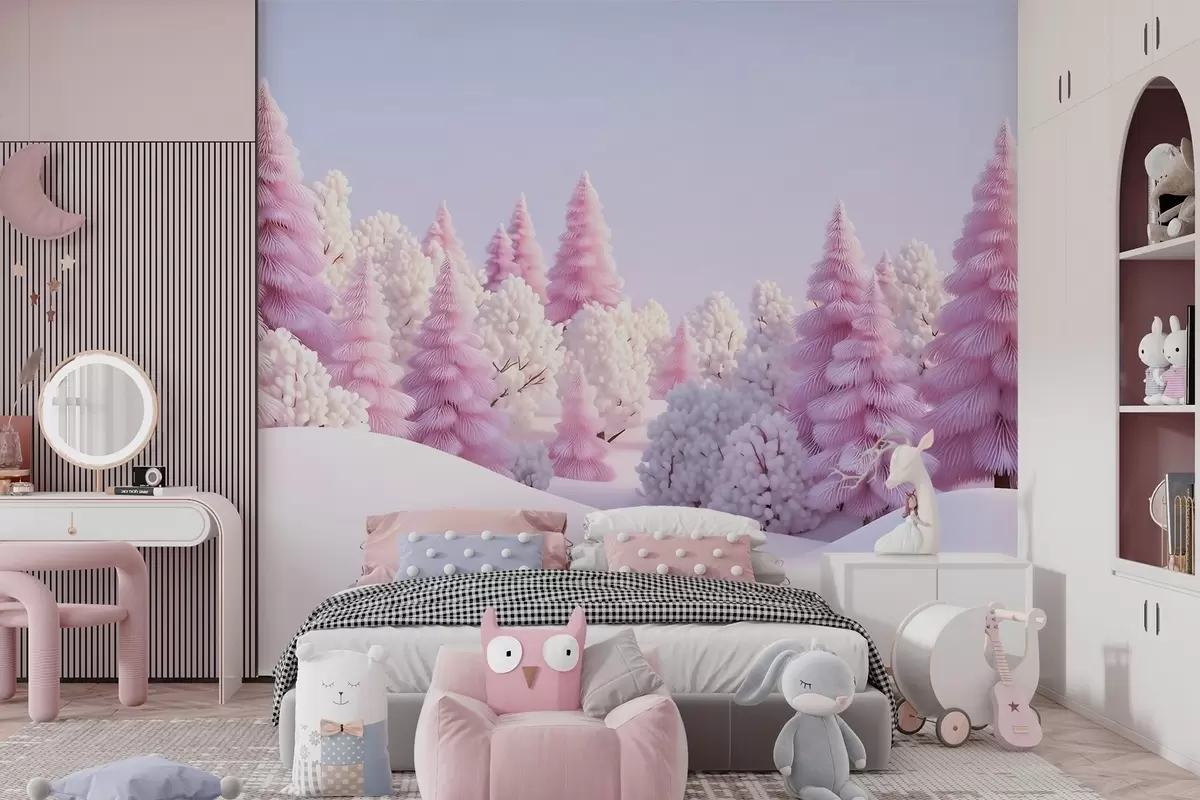 Murais de parede Floresta invernal coberta de neve em tons de rosa Nr. w09654