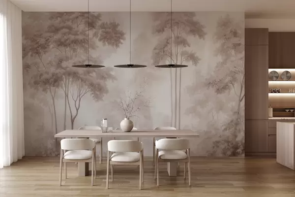 Murais de parede Paisagem florestal abstrata em tons de bege esfumado, com uma sensação de profundidade Nr. w09657