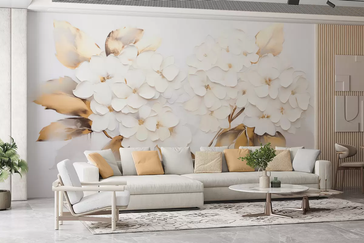 Murais de parede Hortênsias luxuosas com folhas amarelas Nr. w09711
