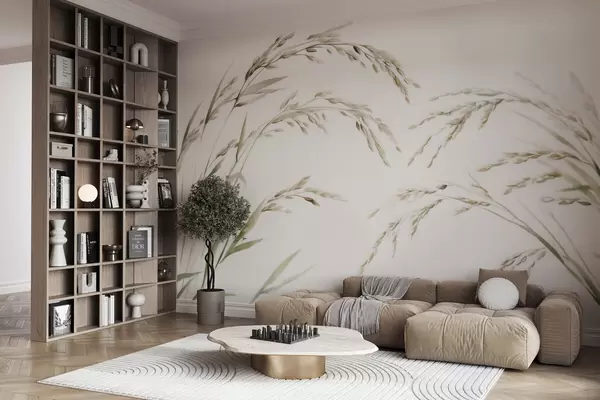 Murais de parede Delicadas gramíneas em tons pastel com um suave efeito de aguarela Nr. w09712