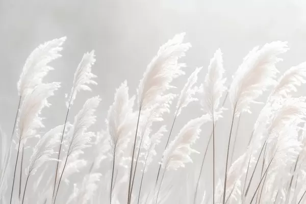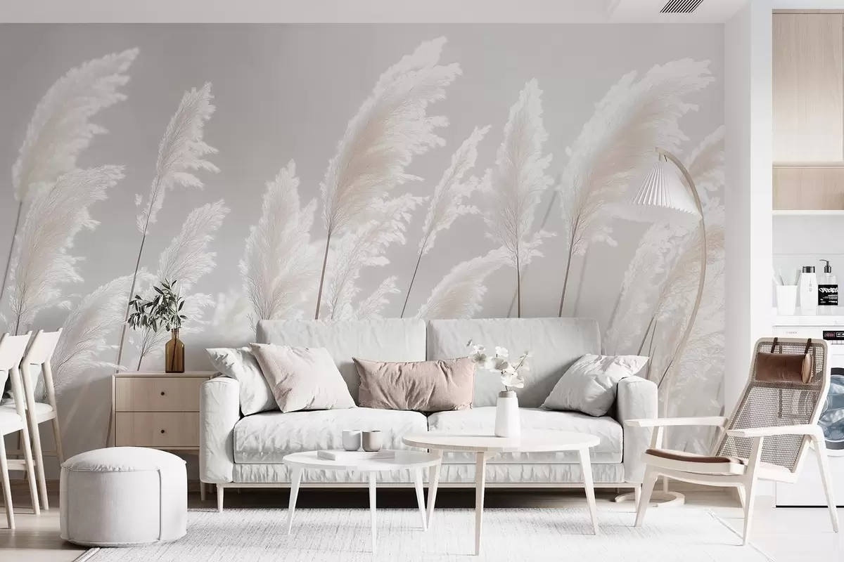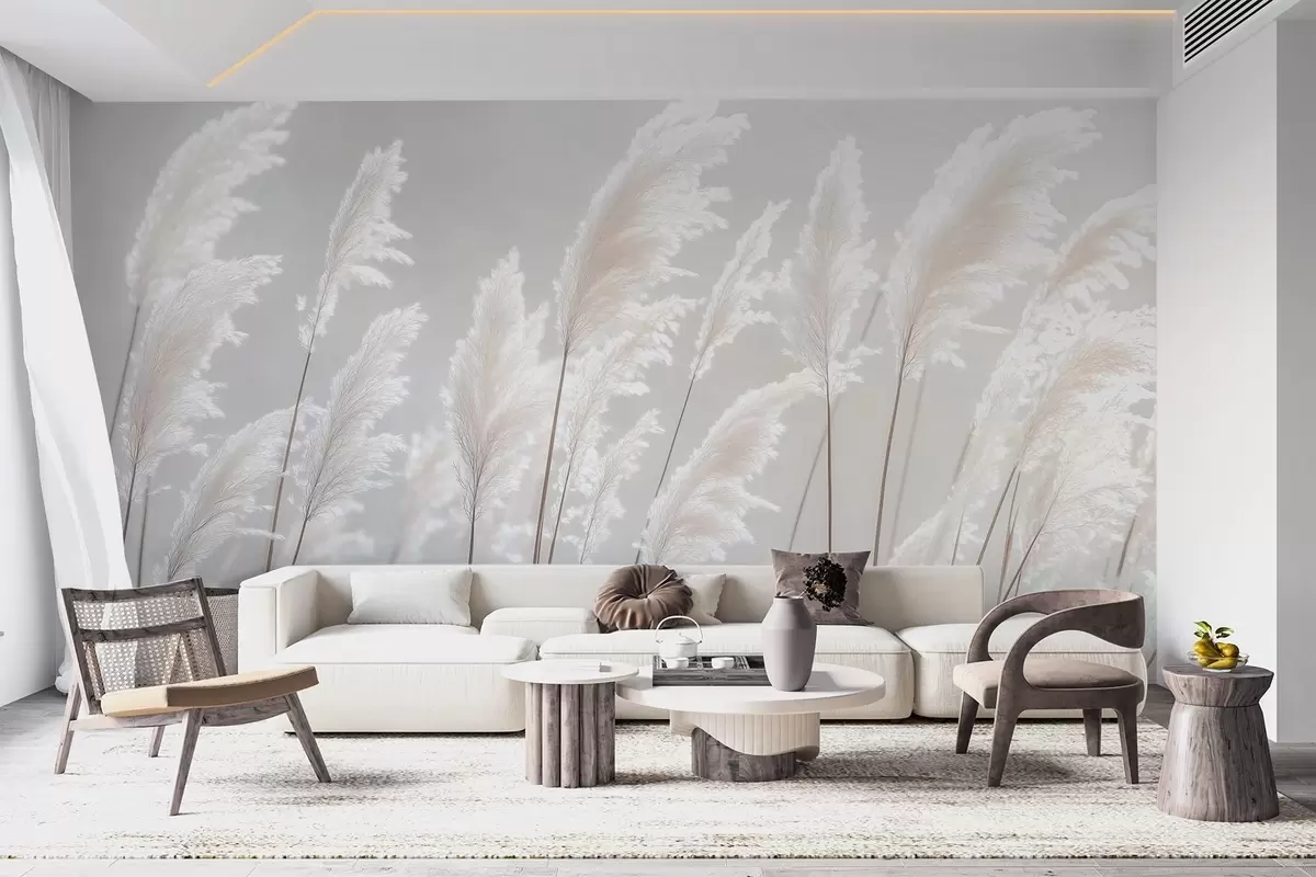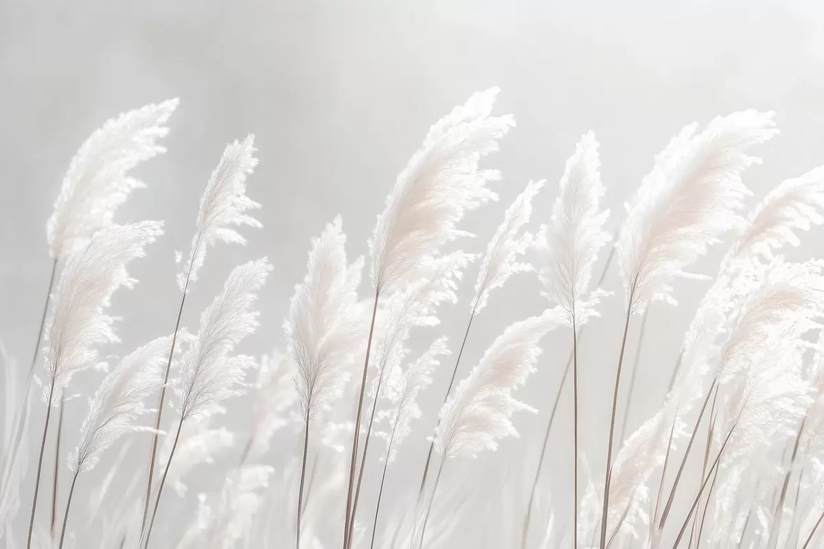 Murais de parede Erva-dos-pampas branca e macia à luz suave da manhã Nr. w09717