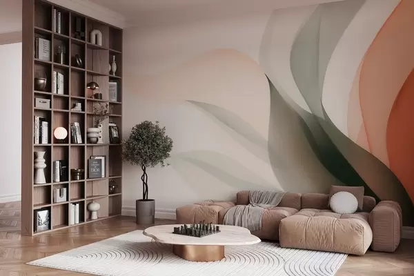 Murais de parede Ondas abstratas em tons de laranja e verde Nr. w09718