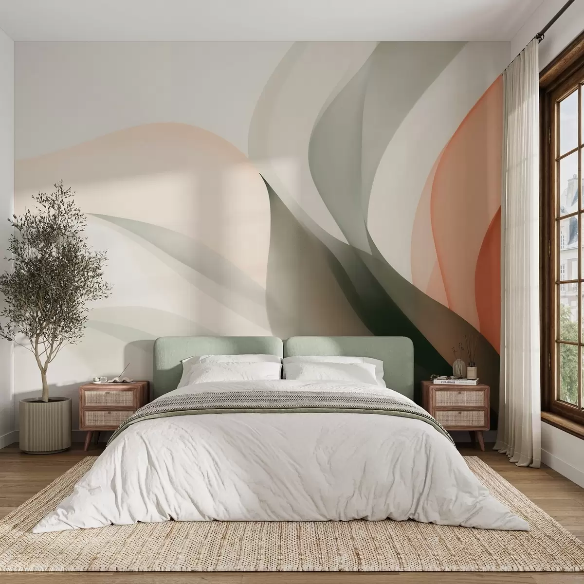 Murais de parede Ondas abstratas em tons de laranja e verde Nr. w09718