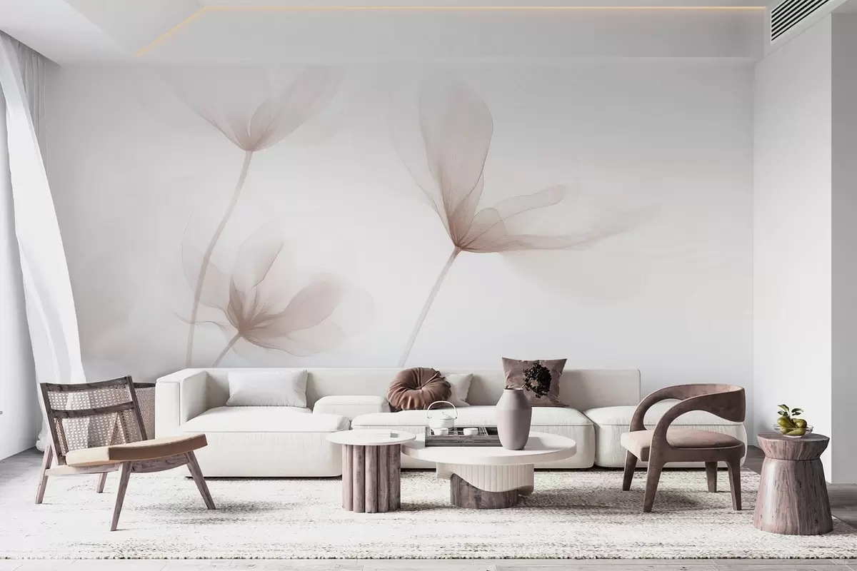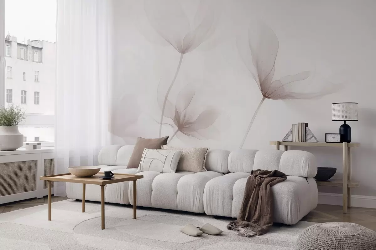 Murais de parede Flores bege arejadas num estilo minimalista e leve Nr. w09734