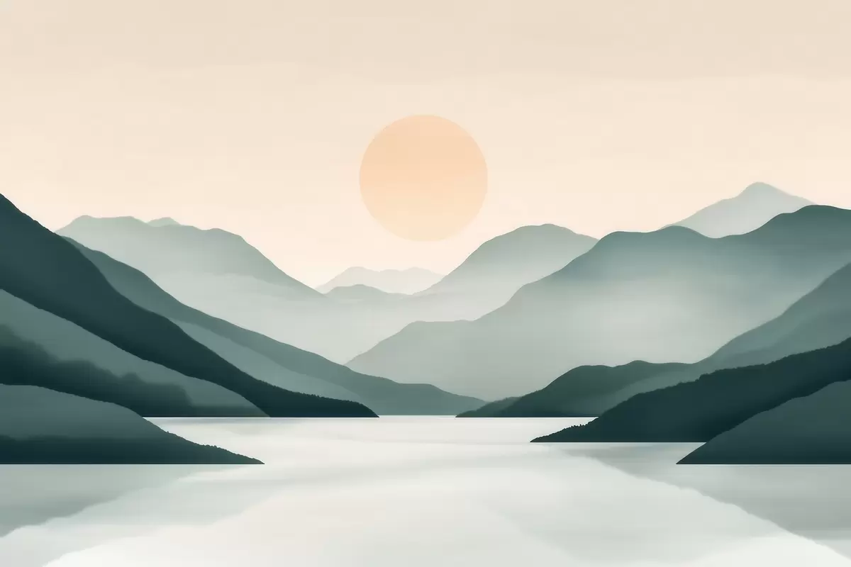 Murais de parede Paisagem montanhosa tranquila com o sol sobre o lago Nr. w09735