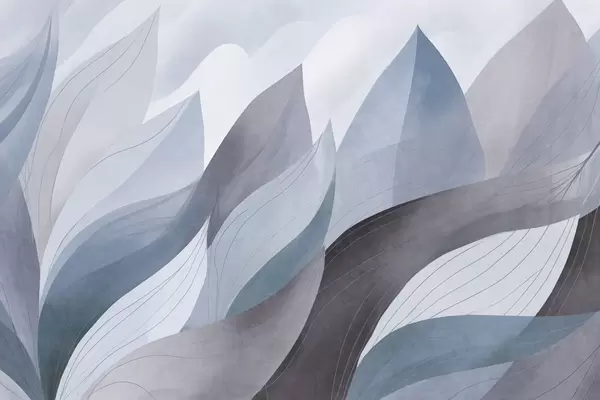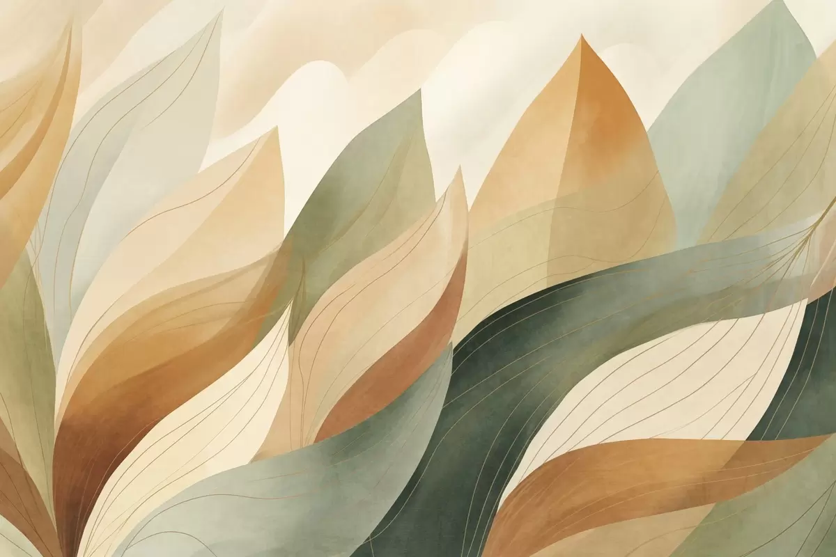 Murais de parede Folhas abstratas, tons terrosos suaves de verde e laranja com detalhes delicados em linhas, textura suave de aguarela Nr. w09736