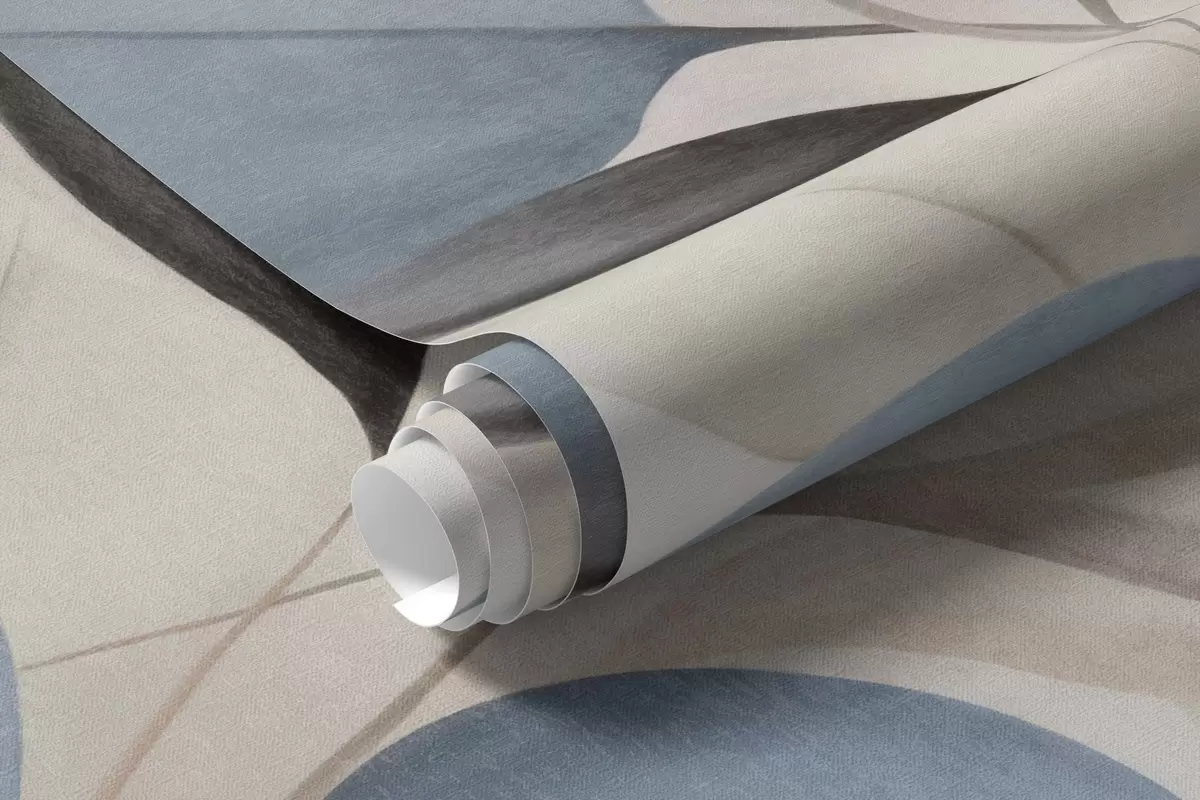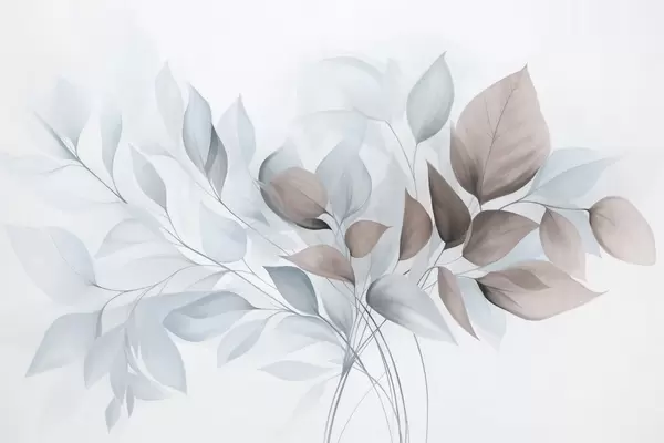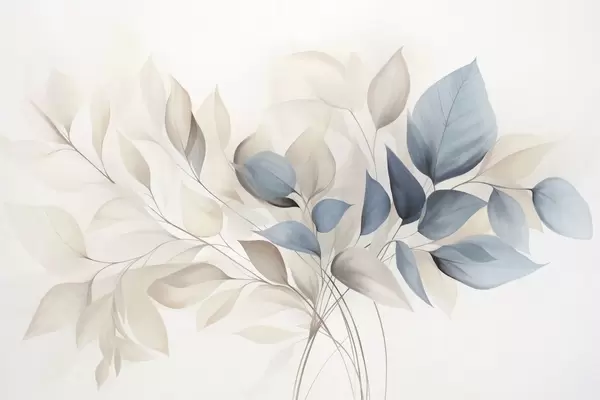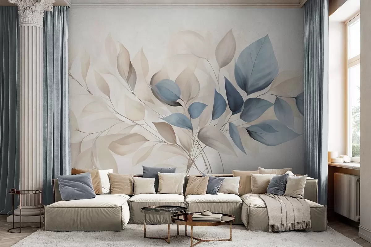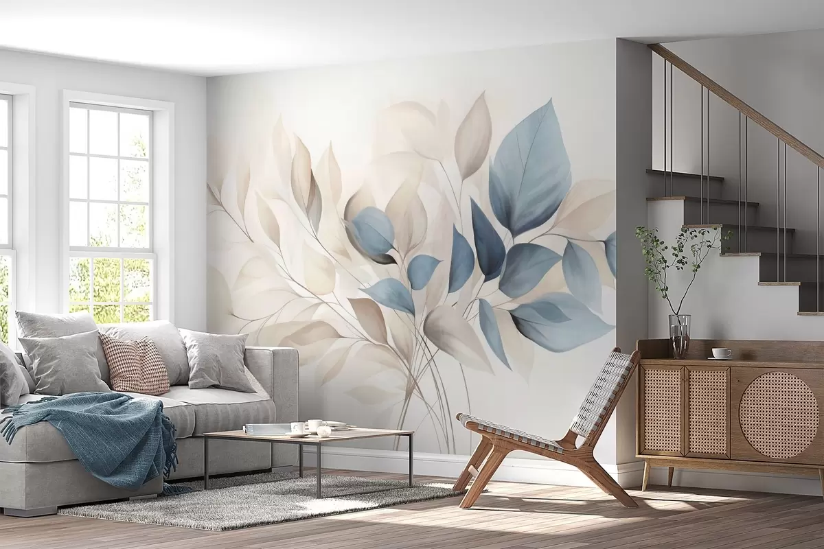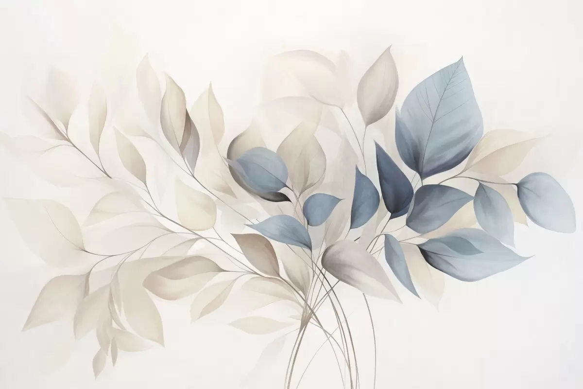 Murais de parede Folhas abstratas translúcidas em tons de azul, bege e creme, arte texturizada Nr. w09744
