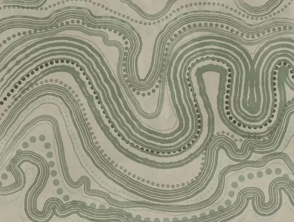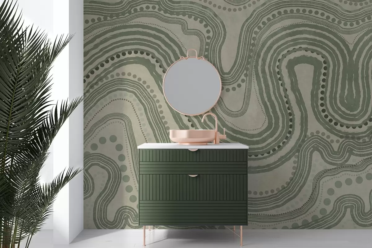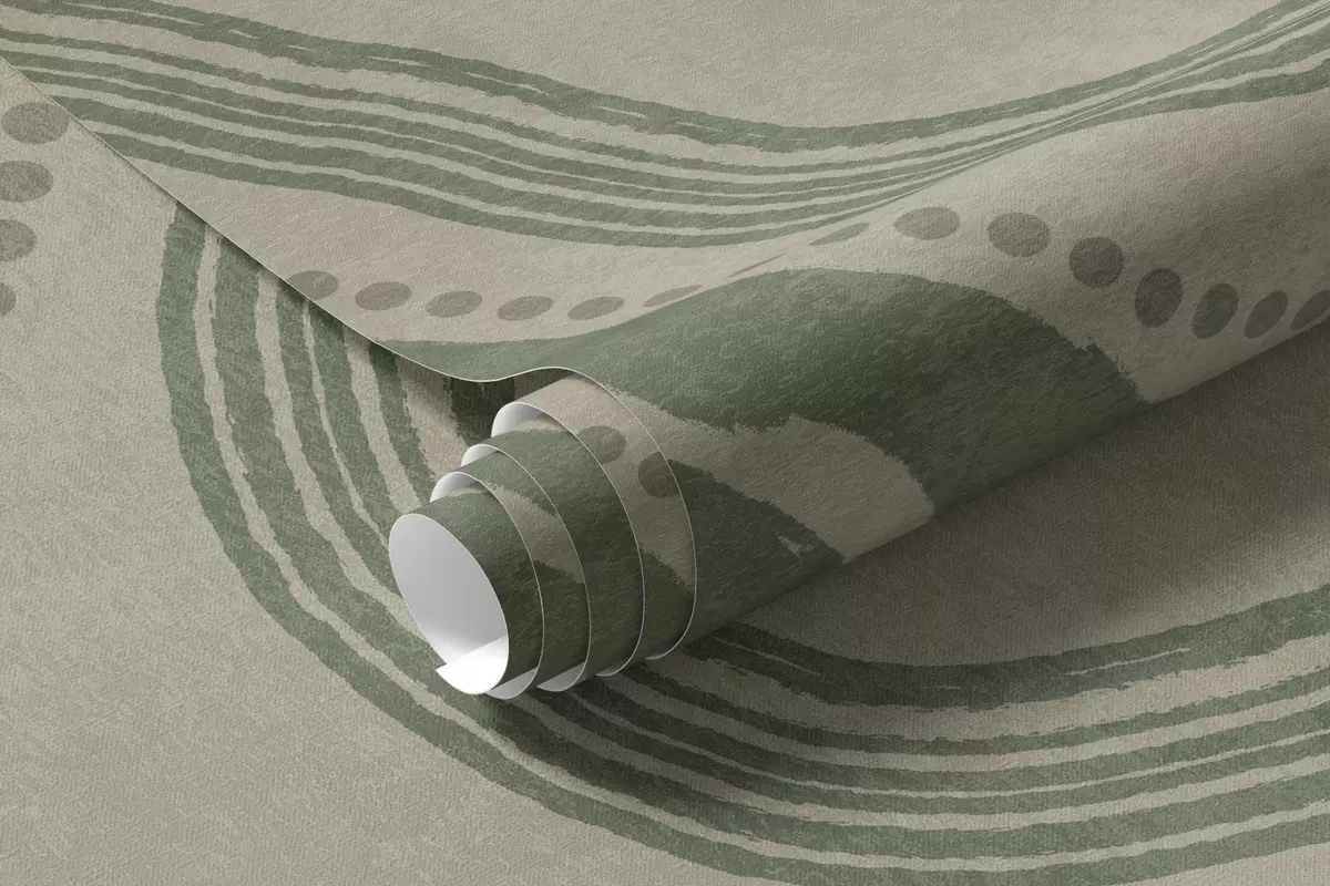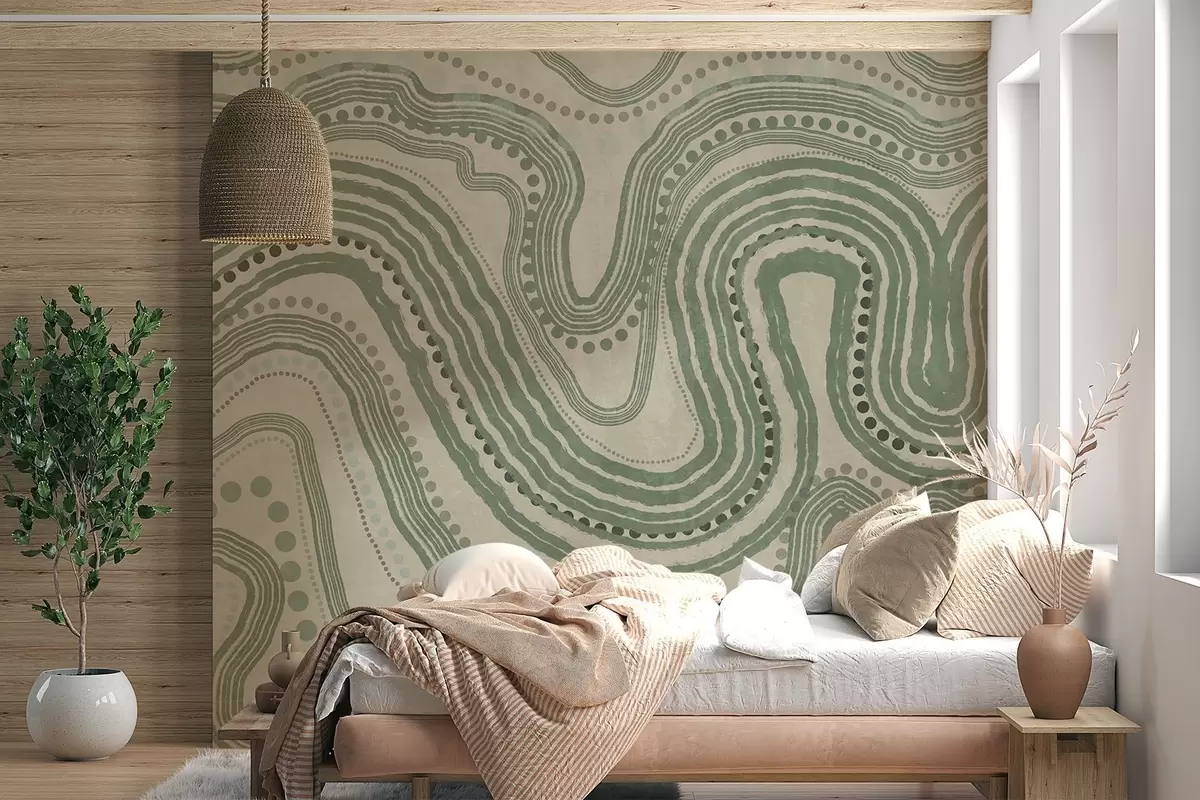 Murais de parede Linhas onduladas e pontos abstratos em verde e bege, arte moderna com textura Nr. w09747