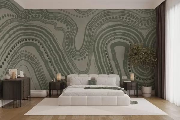 Murais de parede Linhas onduladas e pontos abstratos em verde e bege, arte moderna com textura Nr. w09747