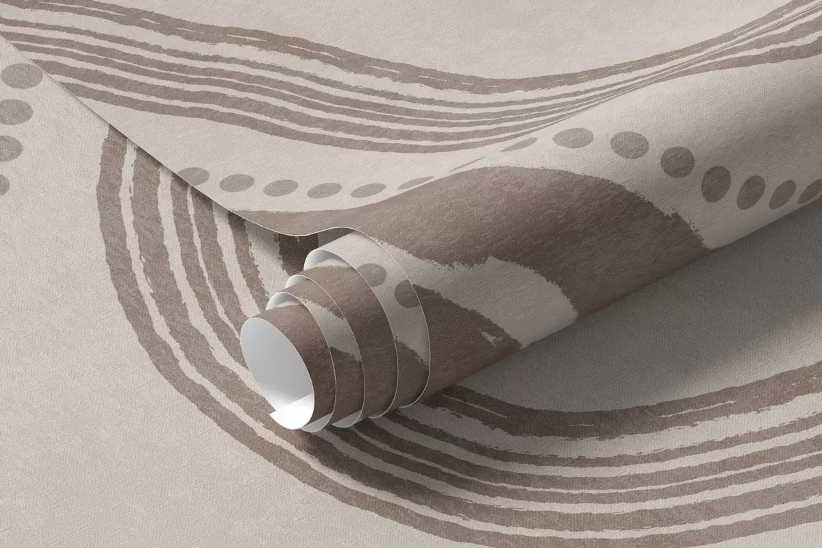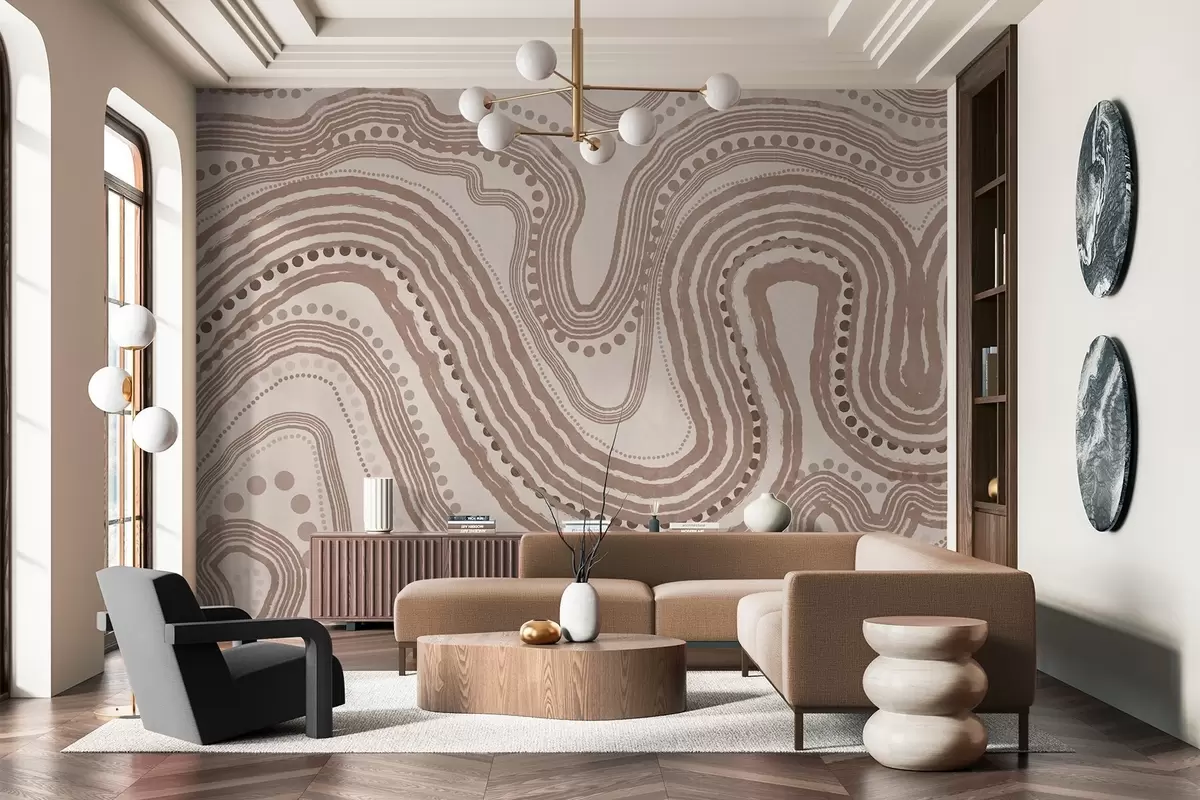 Murais de parede Linhas onduladas e pontos abstratos em castanho e bege, arte moderna com textura Nr. w09747v1