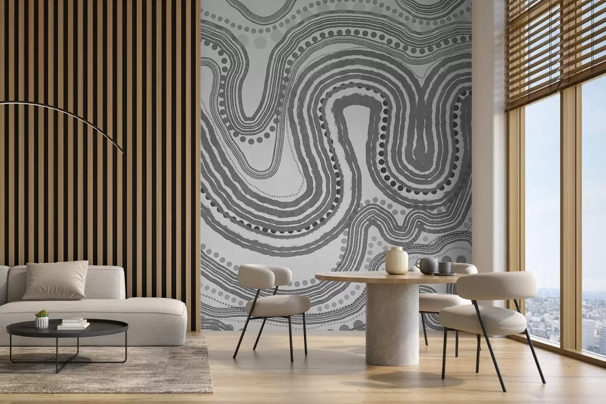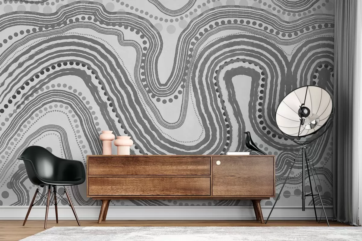 Murais de parede Linhas onduladas e pontos abstratos em cinza escuro, arte moderna texturizada Nr. w09747v2