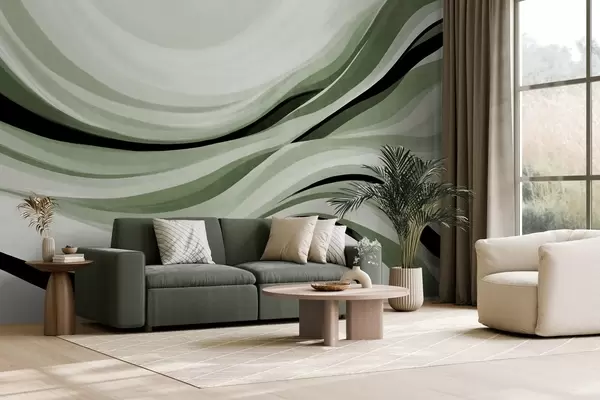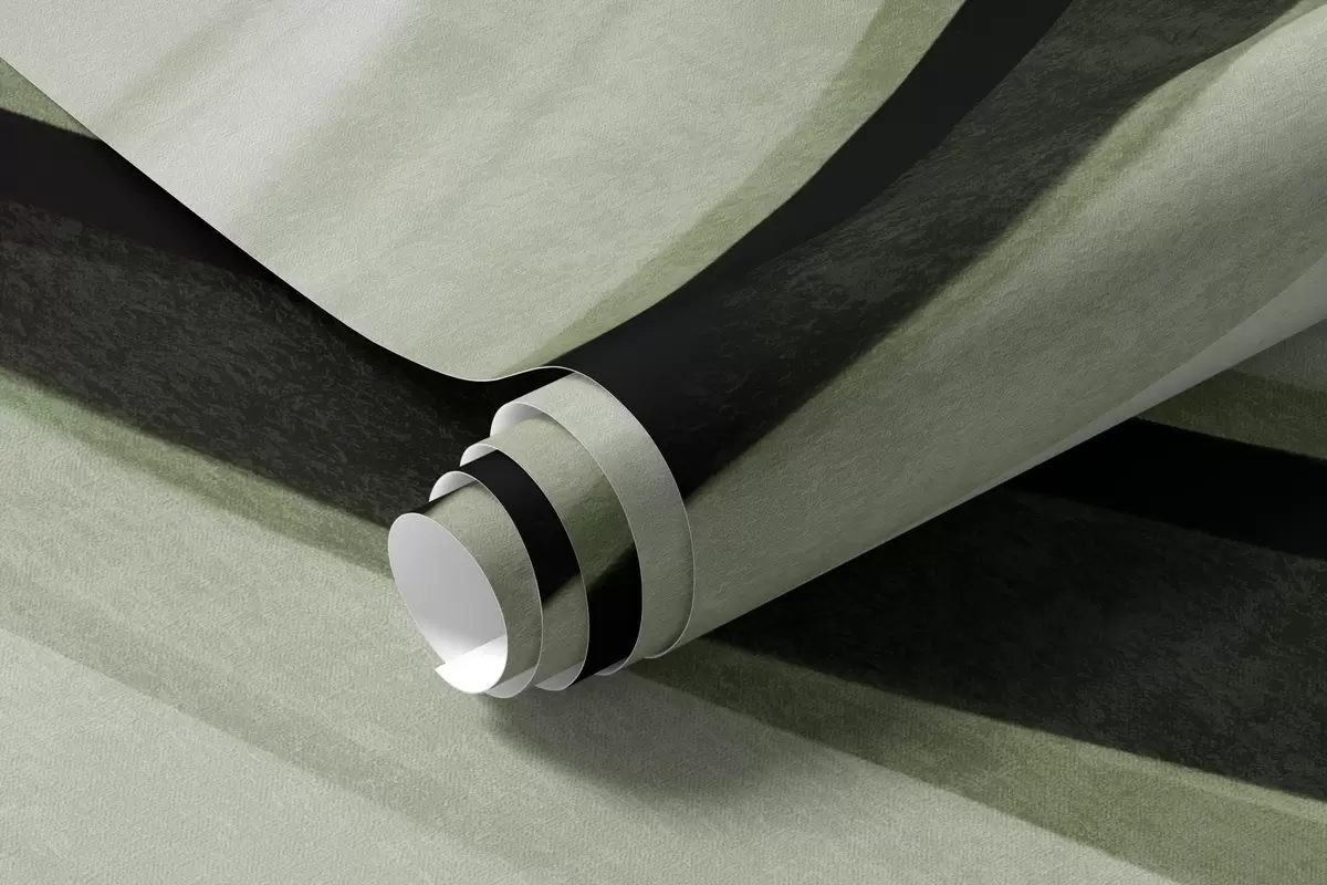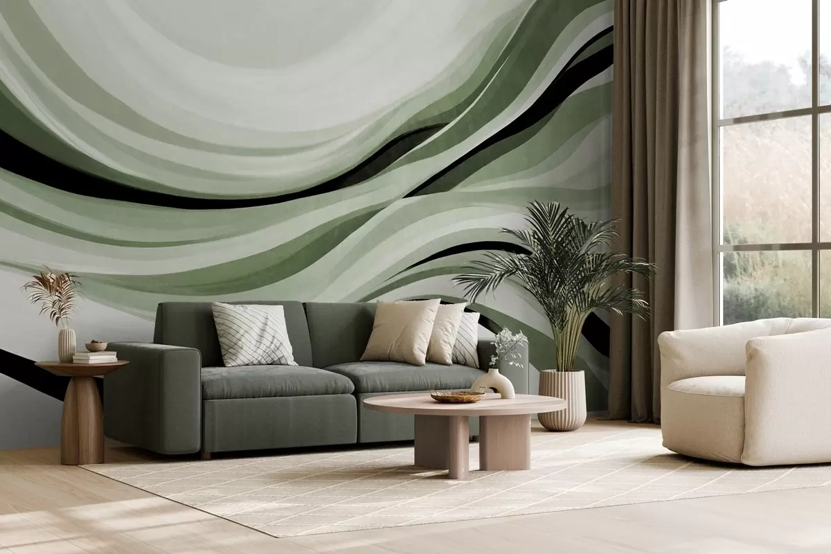 Murais de parede Linhas abstratas onduladas em tons de verde e preto contra um fundo claro, arte texturizada Nr. w09748v1