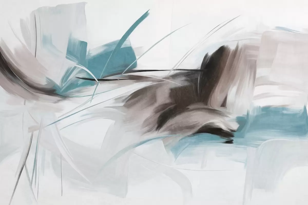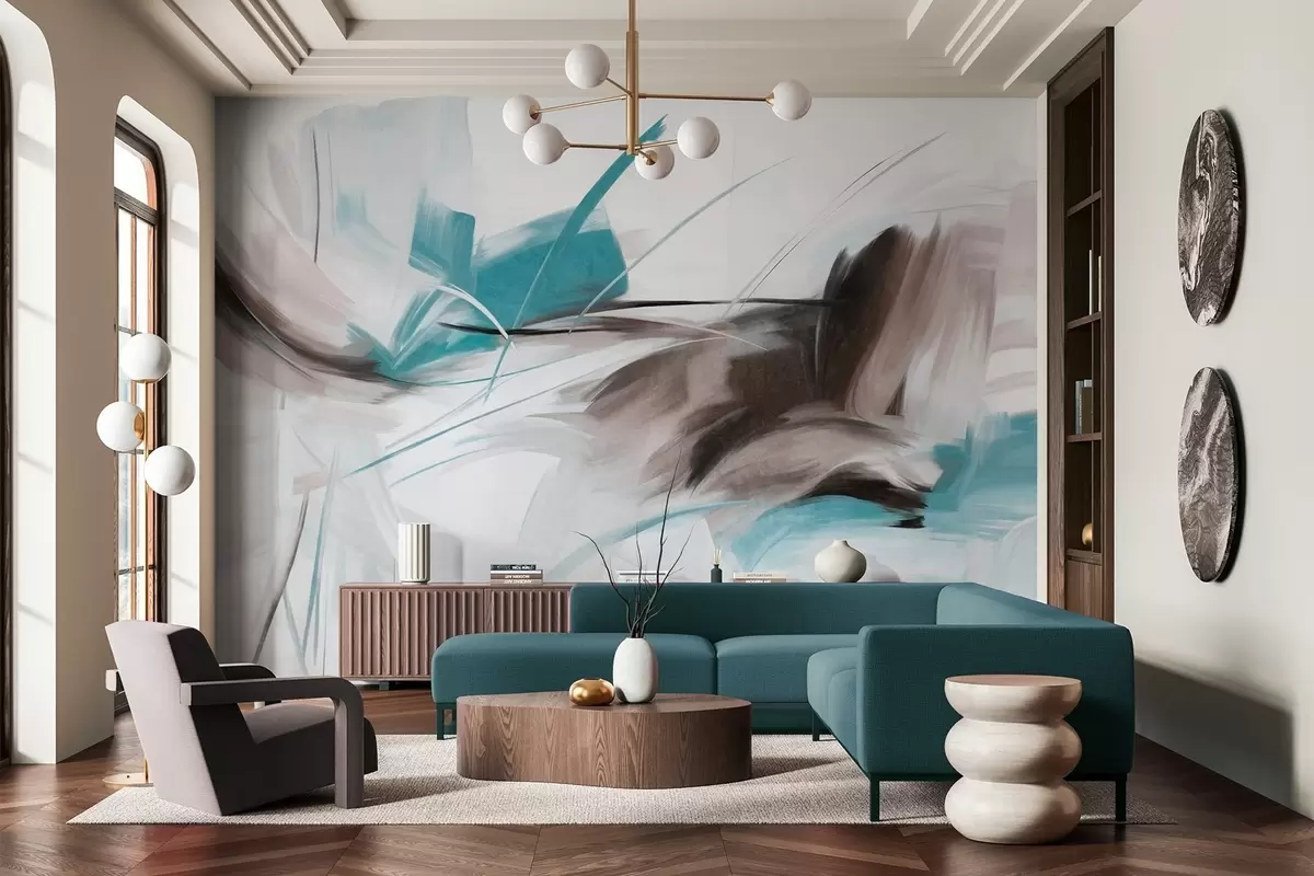 Murais de parede Estilo de pintura abstrata com pinceladas texturizadas em castanho e azul Nr. w09755v1