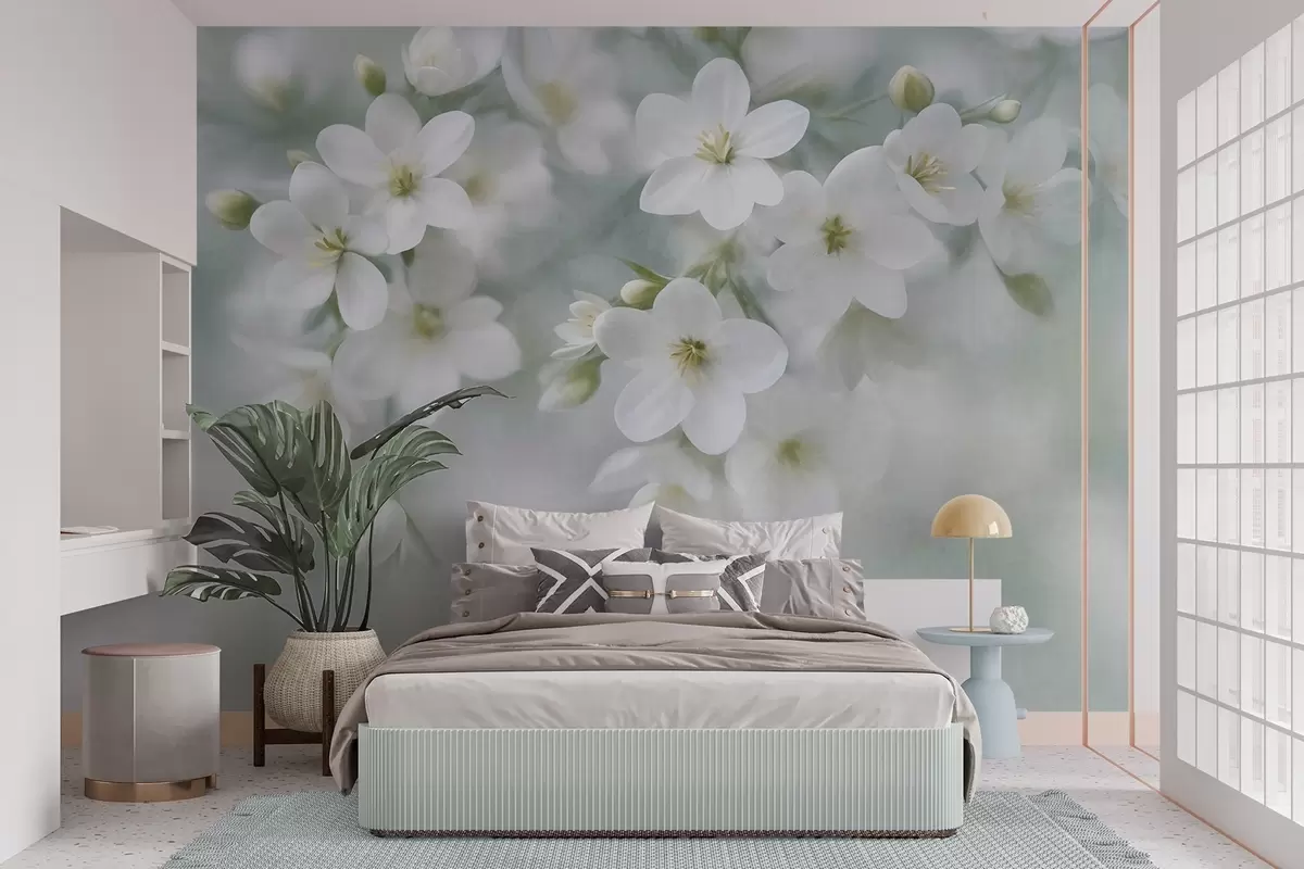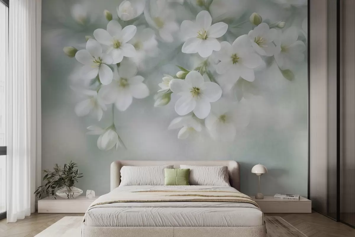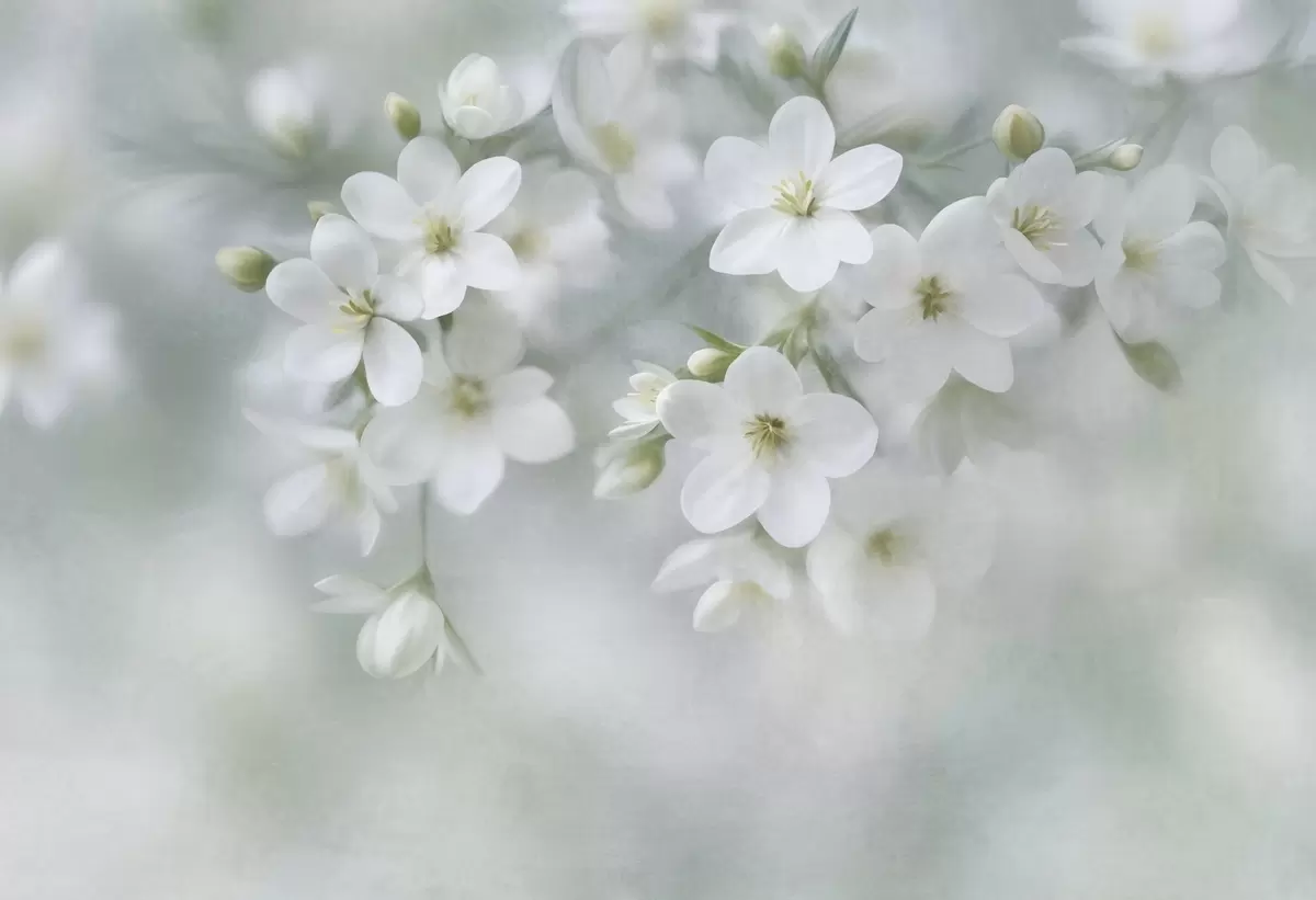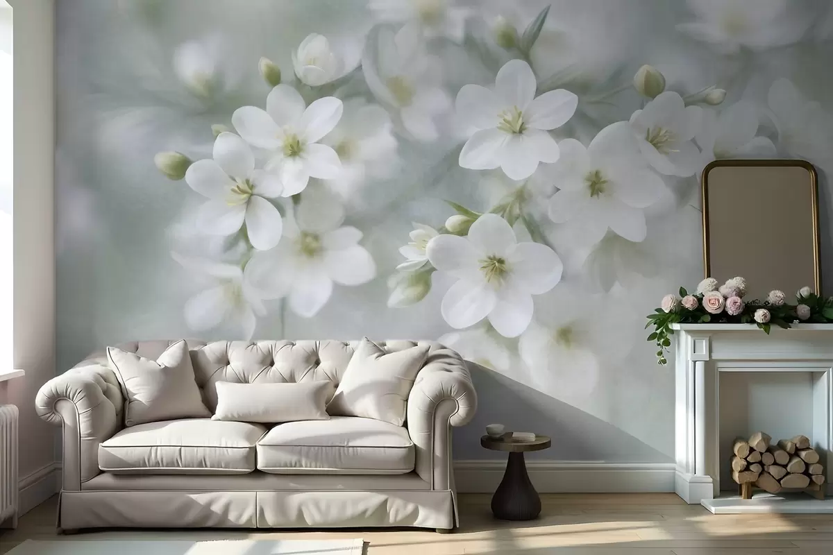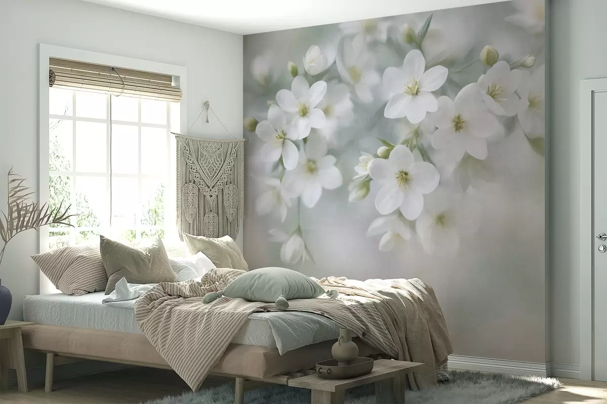 Murais de parede Flores brancas de textura delicada, suavemente desfocadas no fundo Nr. w09759