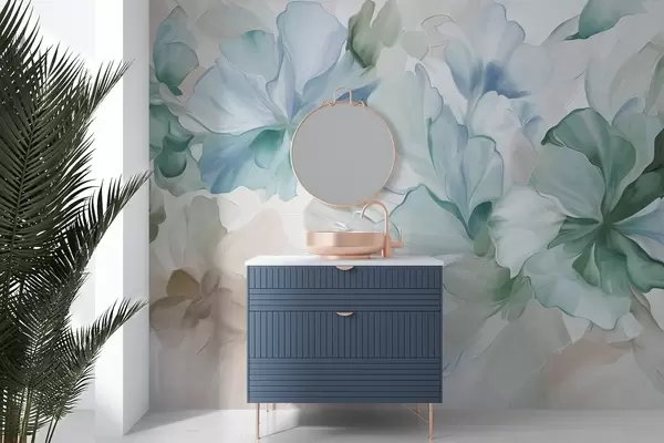 Murais de parede Flores abstratas e fantásticas em tons de verde, azul e bege, em estilo pictórico e com textura Nr. w09767v1