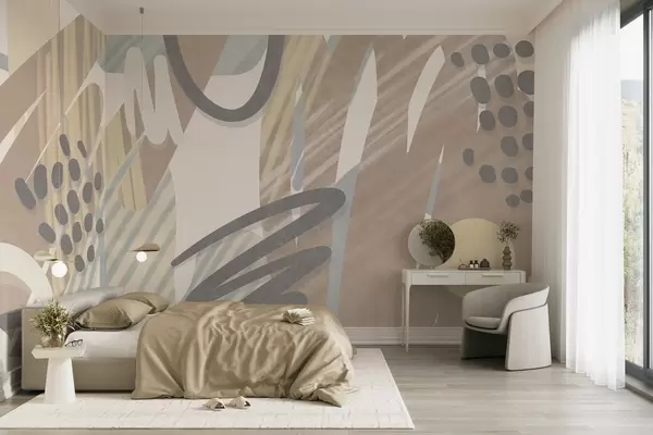 Murais de parede Estampado abstrato com texturas, formas orgânicas, rabiscos e pontos em tons pastel suaves Nr. w09774
