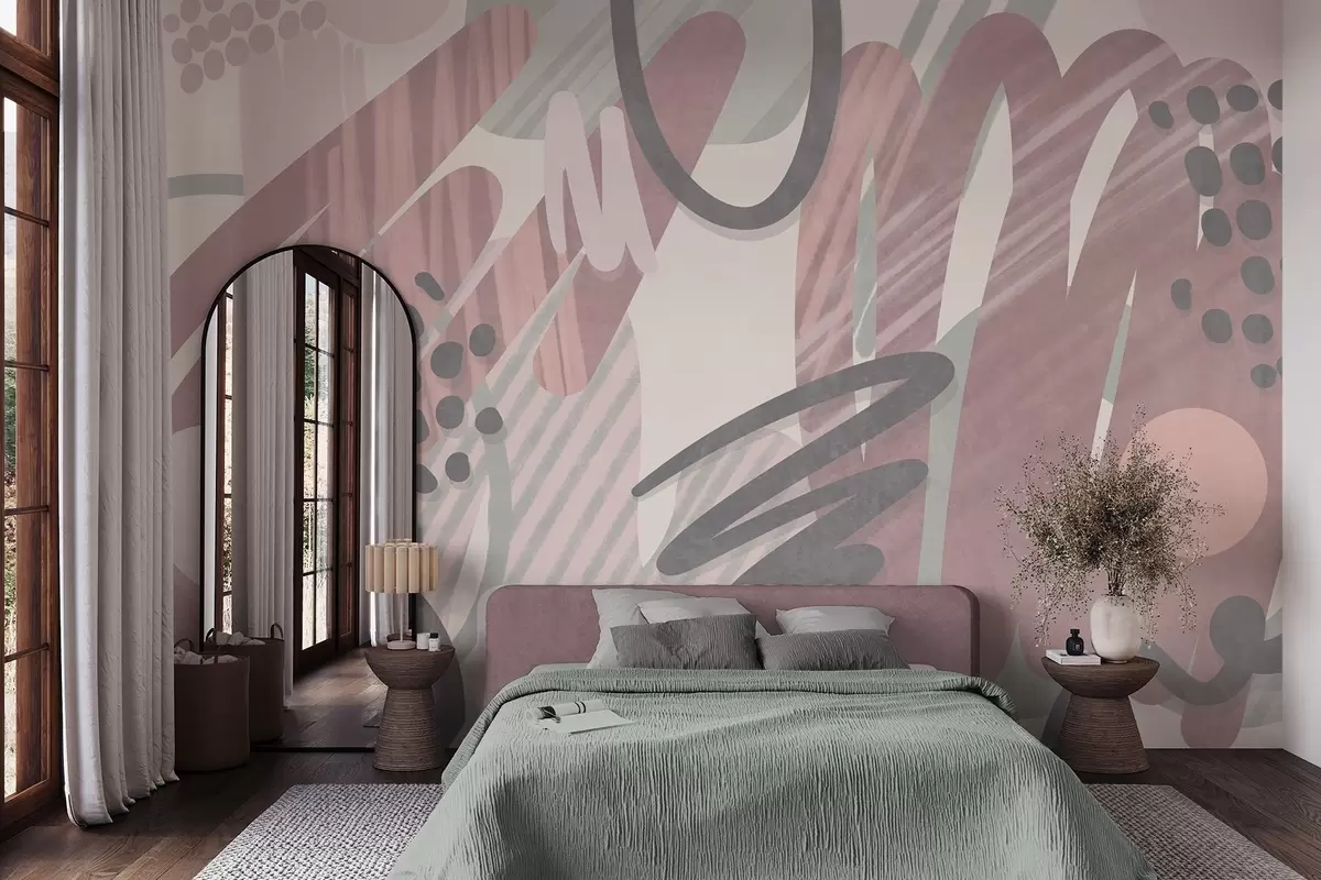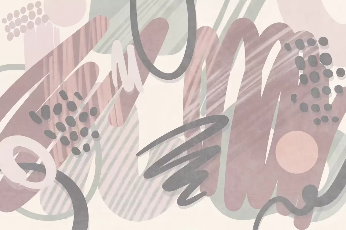 Murais de parede Estampado abstrato com texturas, formas orgânicas, rabiscos e pontos em tons pastel suaves Nr. w09774v1