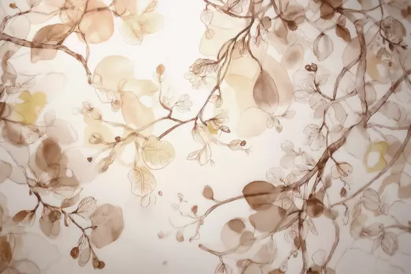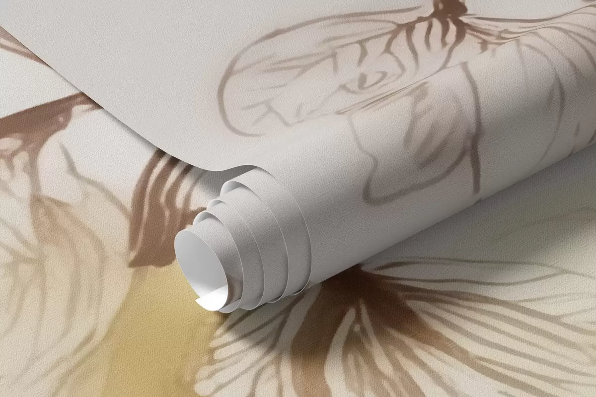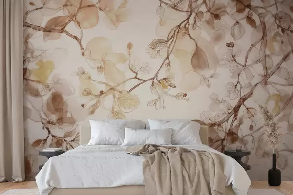 Murais de parede Ramos suspensos e esvoaçantes em tons de bege, em estilo aquarela Nr. w09795