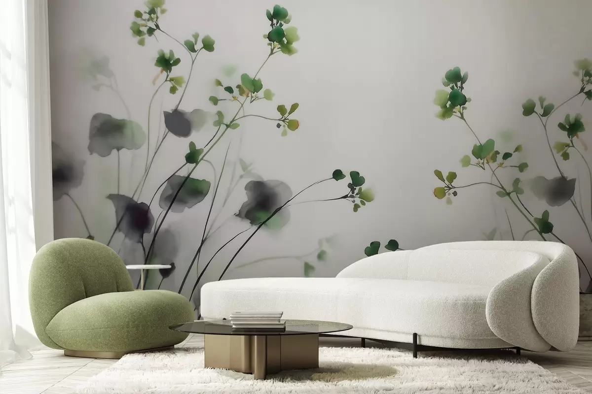Murais de parede Delicadas flores silvestres e ervas em estilo aquarela Nr. w09796