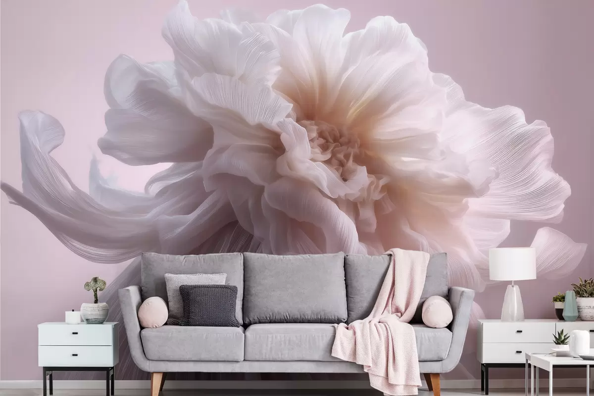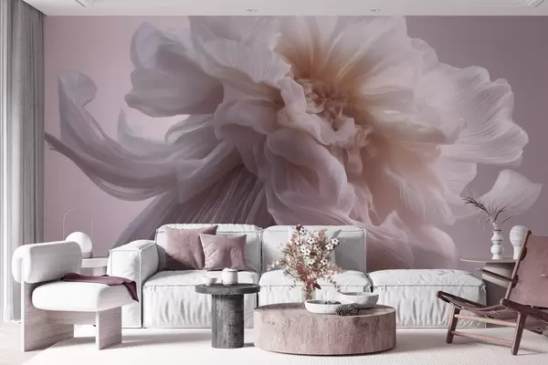 Murais de parede Flor de seda volumosa em tons suaves de rosa e bege Nr. w09809