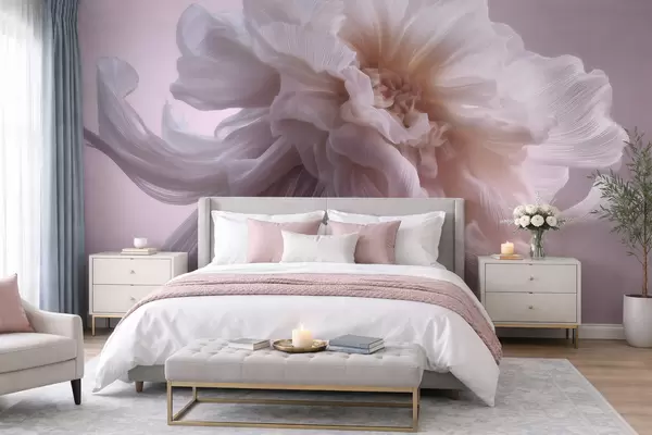 Murais de parede Flor de seda volumosa em tons suaves de rosa e bege Nr. w09809