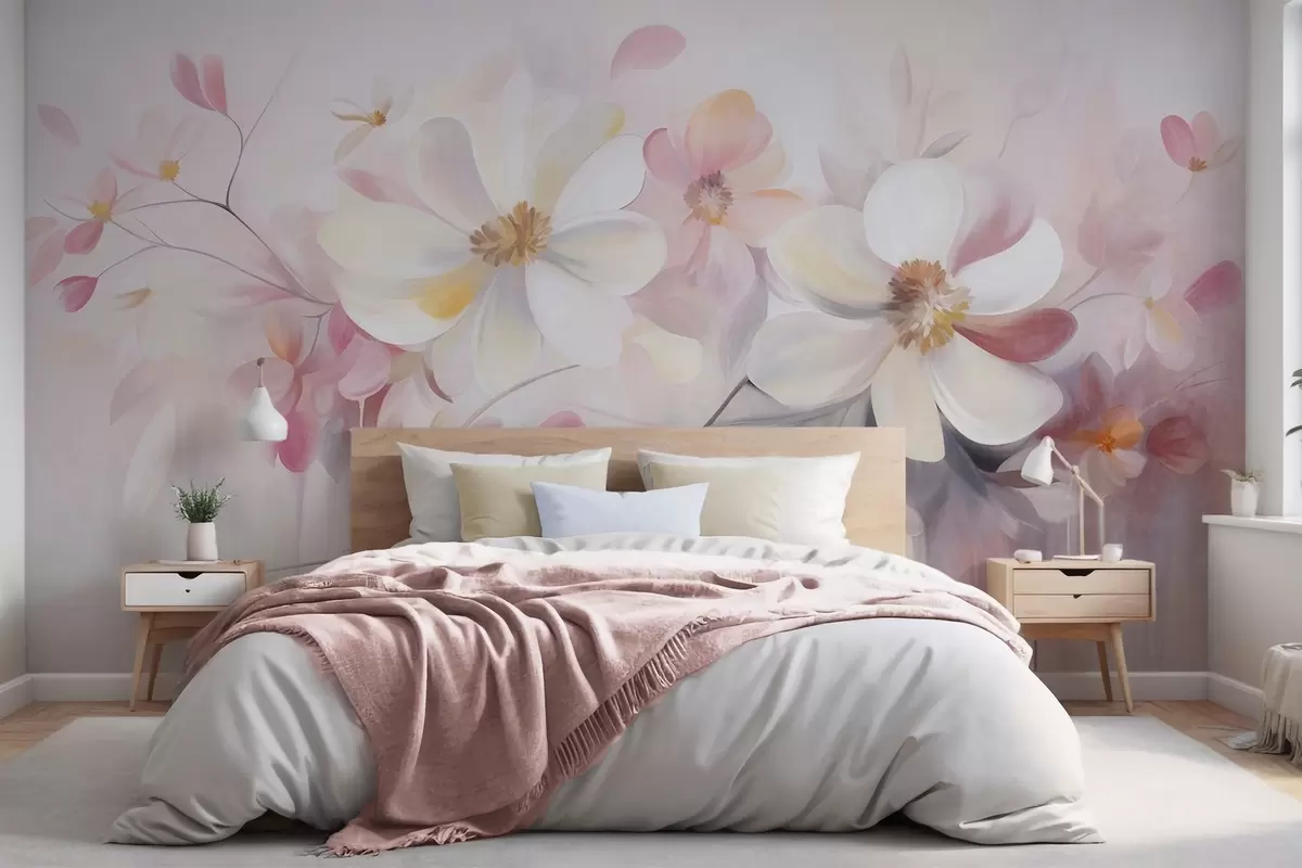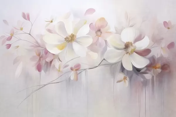 Murais de parede Arte com textura de flores brancas e cor-de-rosa com pétalas delicadas, fundo abstrato e suave Nr. w09811
