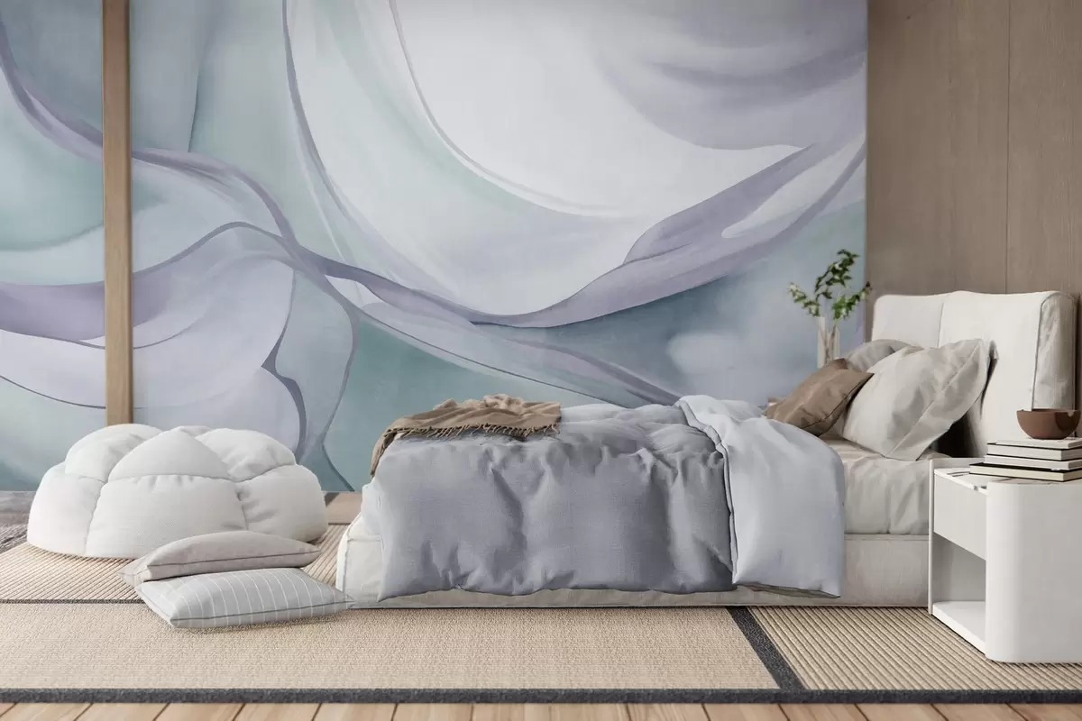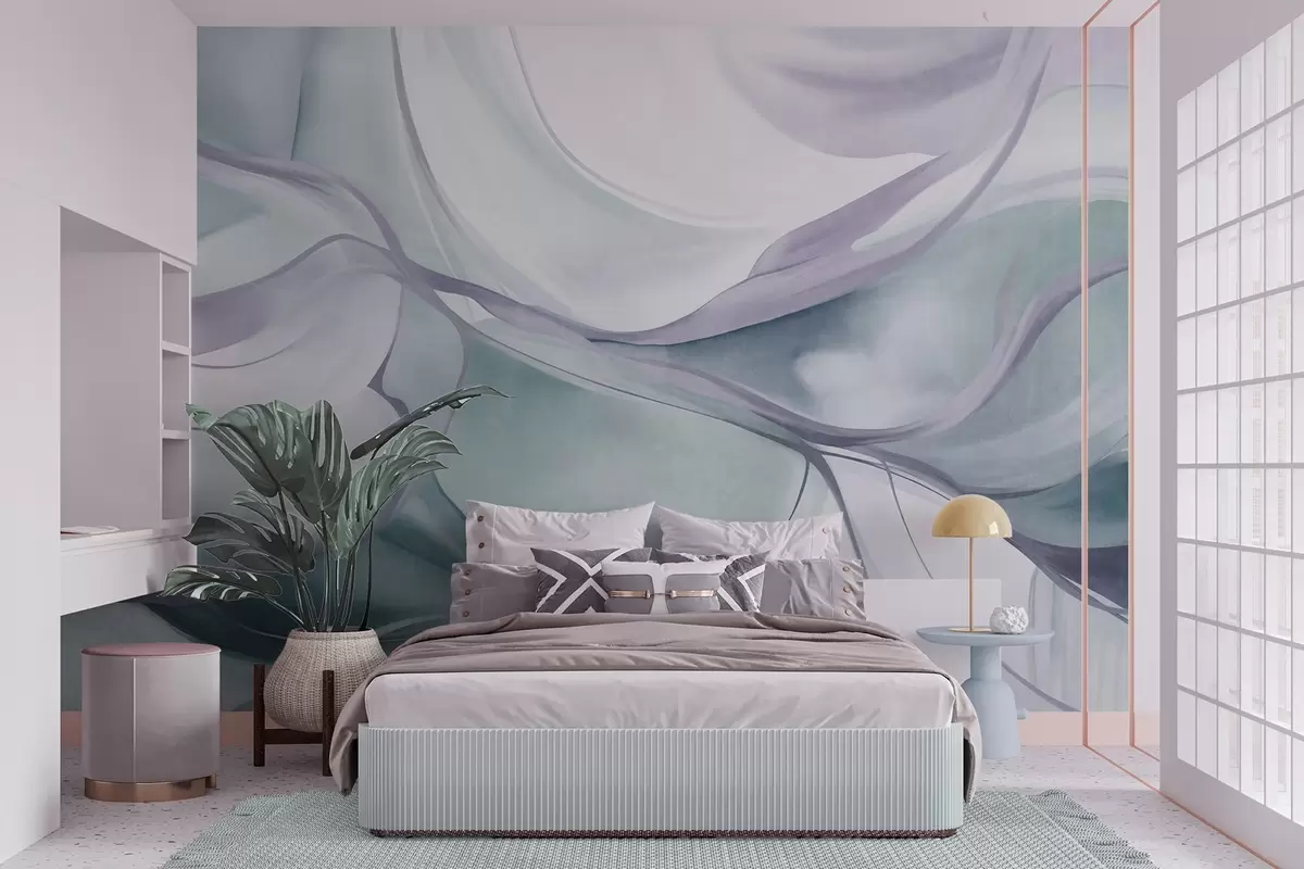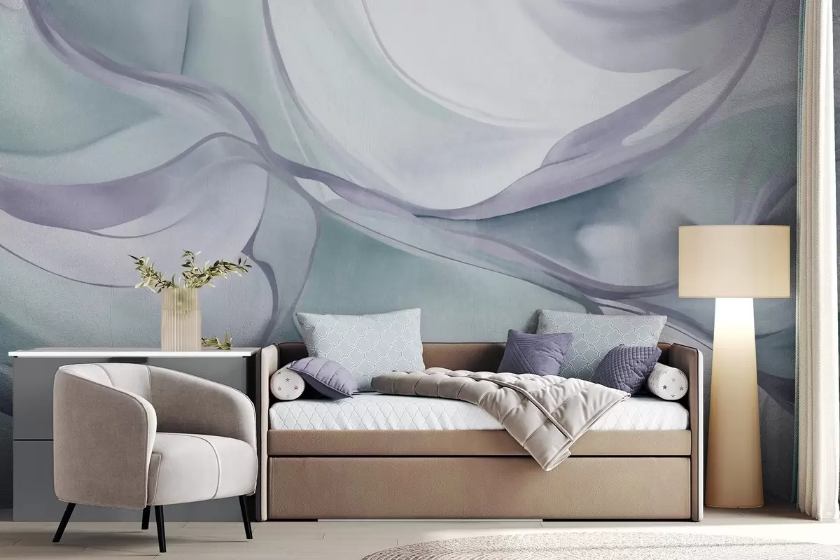 Murais de parede Formas fluidas com textura abstrata em tons de azul e cinzento, com linhas delicadas Nr. w09818v1