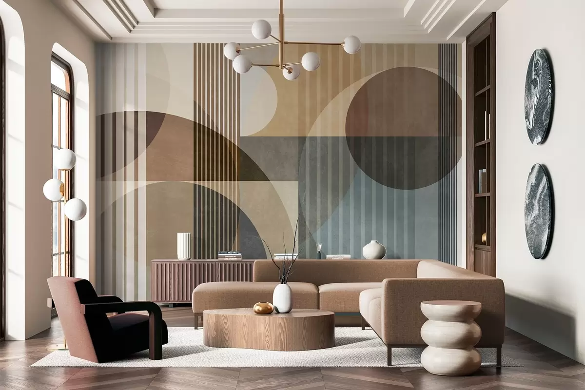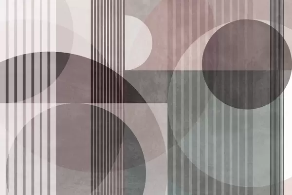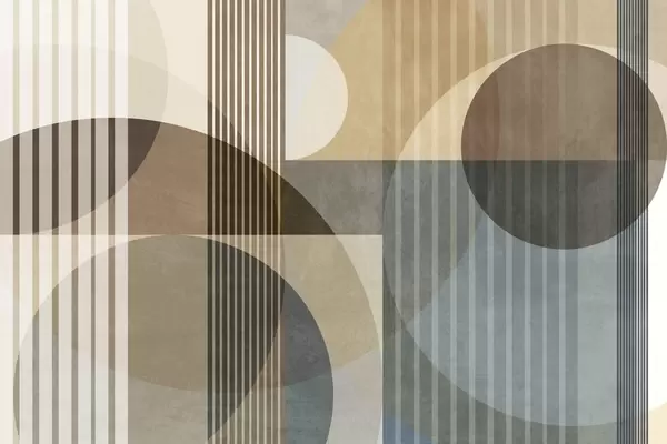 Murais de parede Formas geométricas abstratas com círculos e linhas, tons terrosos suaves, composição texturada e em camadas Nr. w09834