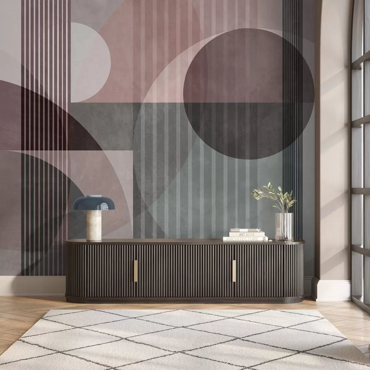 Murais de parede Formas geométricas abstratas com círculos e linhas, tons suaves, textura e composição em camadas Nr. w09834v1