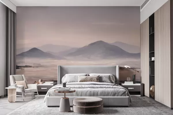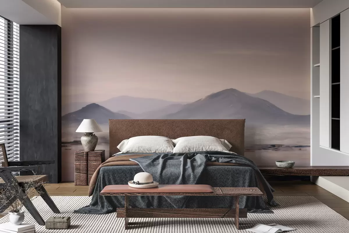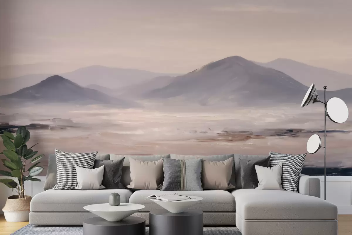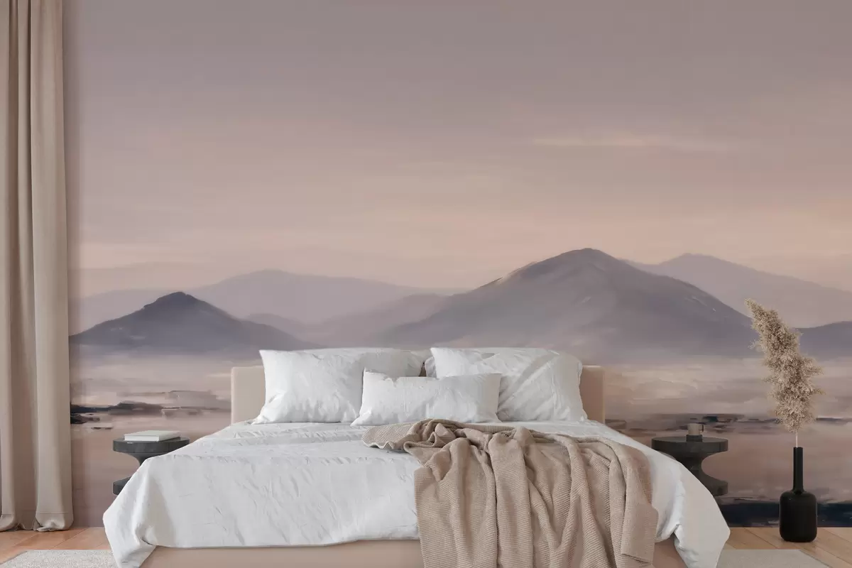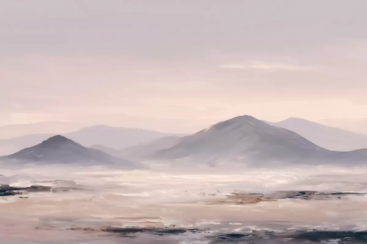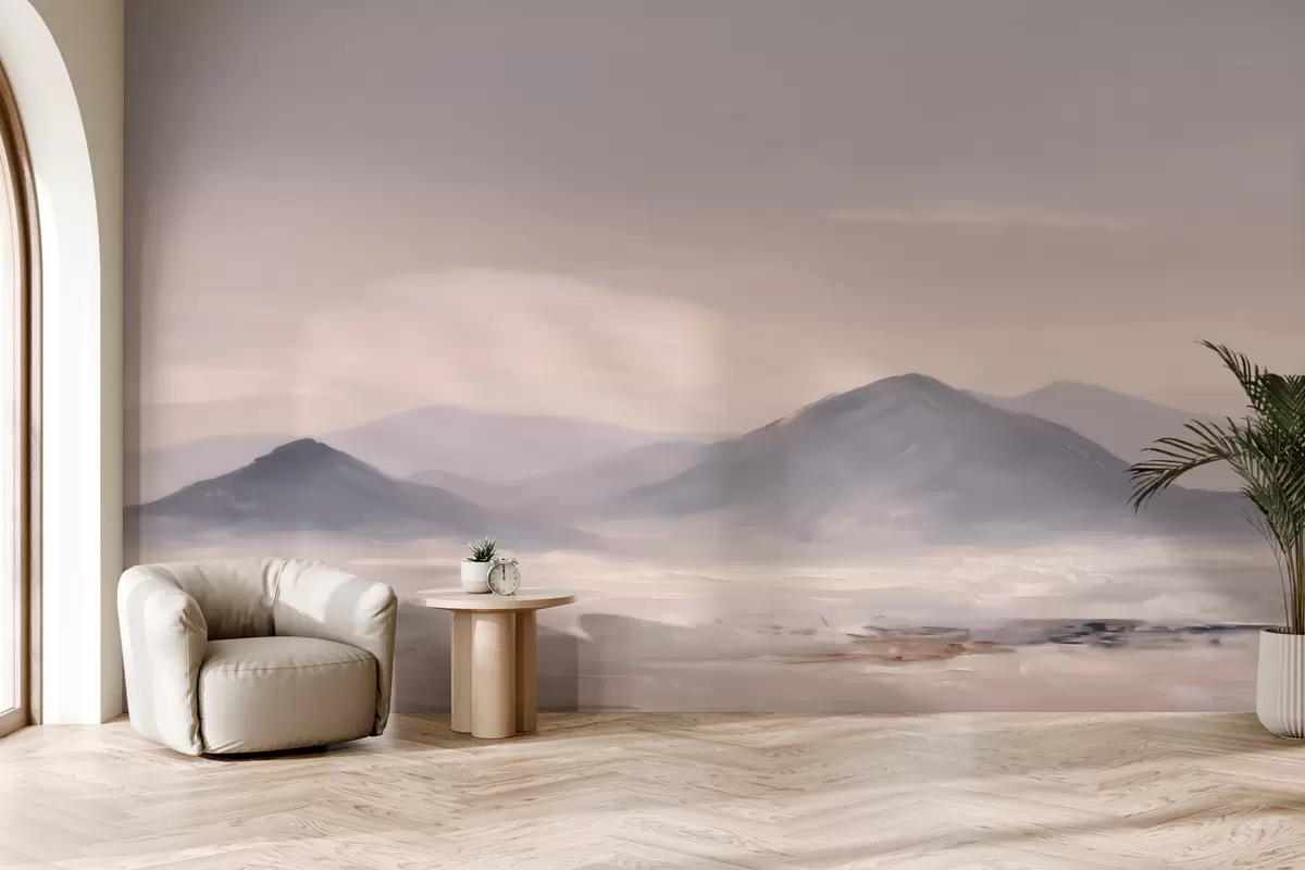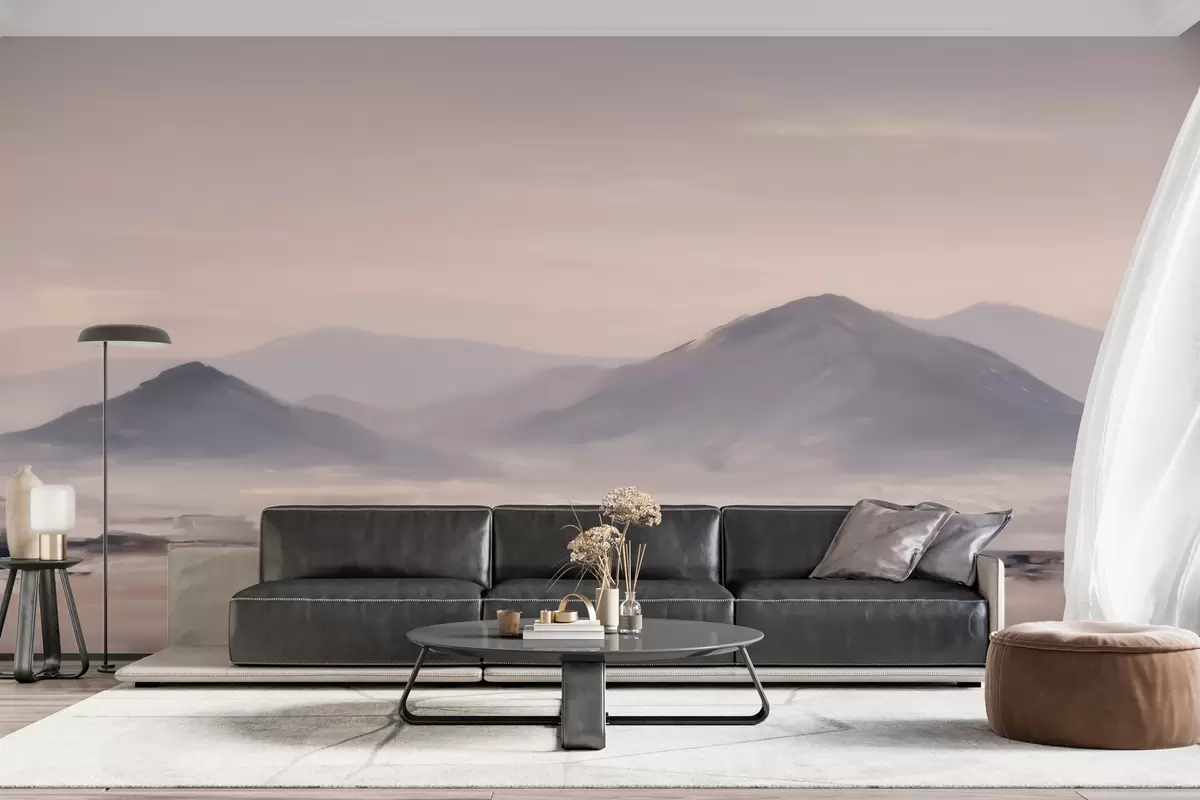 Murais de parede Uma paisagem montanhosa enevoada com transições suaves de luz e ar, com um efeito semelhante a uma máscara Nr. w09844