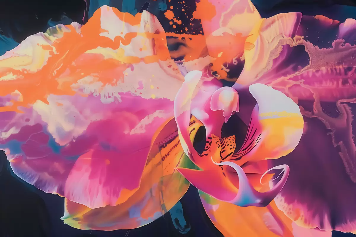 Murais de parede Uma flor de orquídea abstrata e vibrante, com cores ricas e formas dinâmicas, em estilo aquarela Nr. w09855