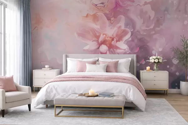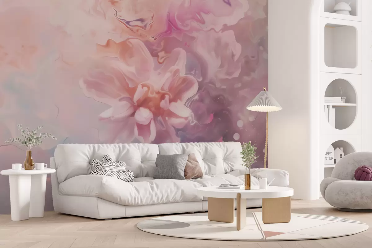 Murais de parede Uma composição abstrata com uma flor e tons suaves de rosa em estilo aquarela Nr. w09859