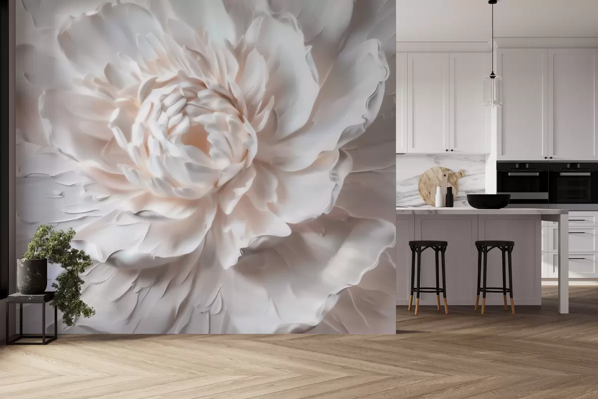 Murais de parede Uma delicada flor em baixo-relevo com pétalas suaves em tons claros Nr. w09861